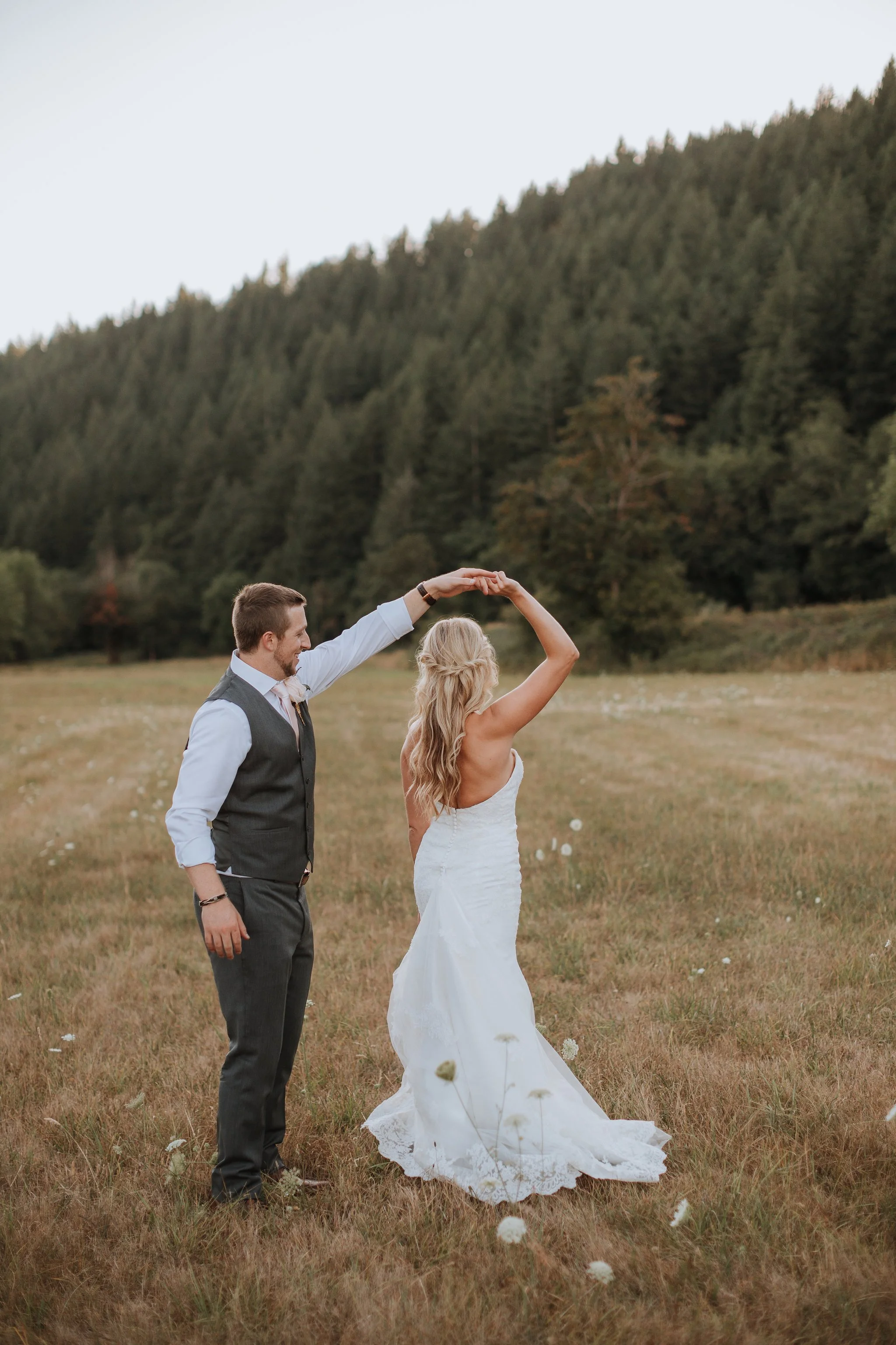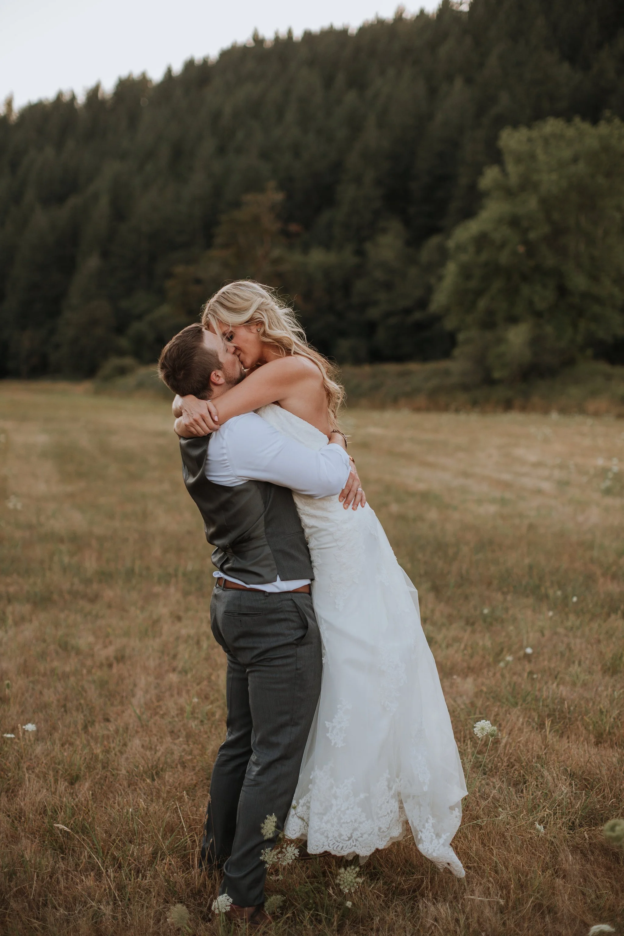 The portraits at sunset were the moment for me, though. We snuck away for about twenty minutes while the light was doing that soft, hazy Pomeroy thing across the field, and I got frames of Scott dipping Rachel, of him twirling her in her dress, of the two of them just laughing. Those quiet middle moments of a wedding day, the ones between the big events, are almost always where my favorite frames come from. This day was no exception.