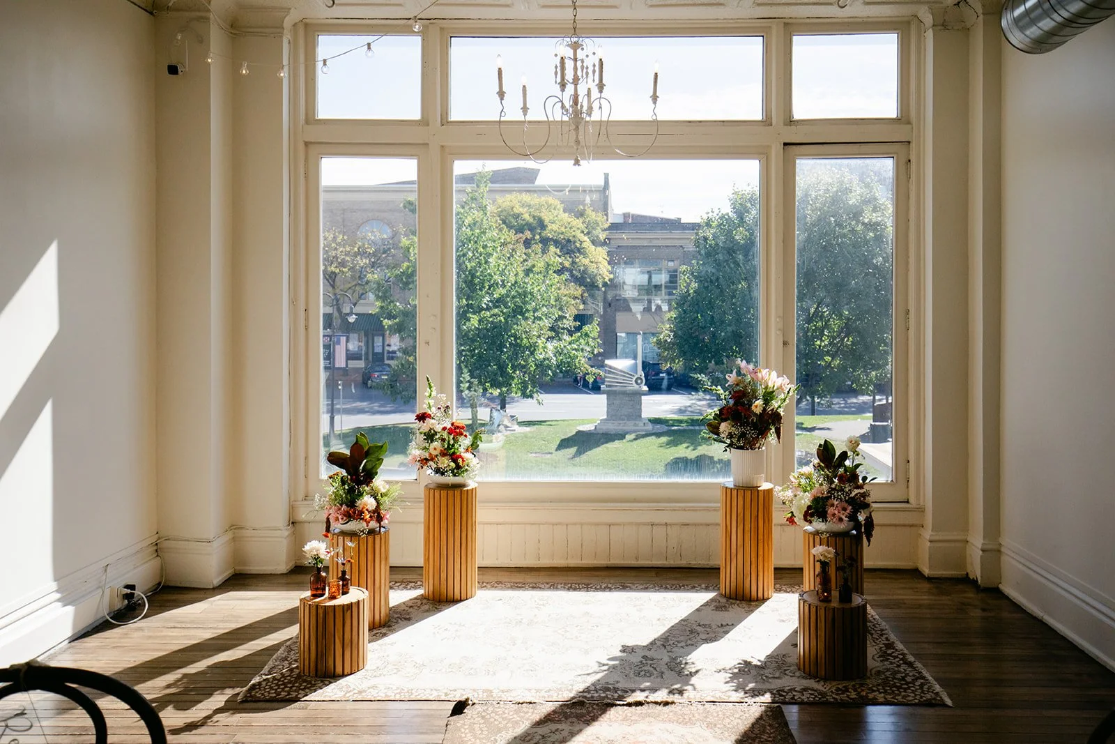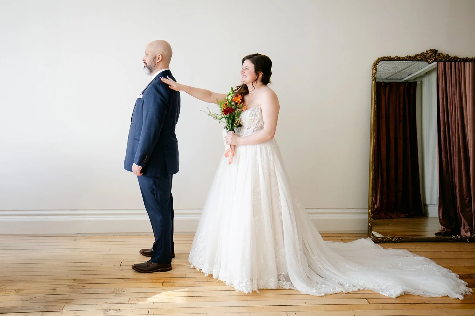 There are venues that feel like someone built them specifically for photographs. The Lincoln Loft & Studio in downtown Watertown, New York is one of those. Tucked into the charming Lincoln building right on Public Square, it's all natural light and open space and carefully curated vintage details that somehow manage to feel effortless rather than staged. The moment I walked in I understood immediately why Samantha and Jason chose it.