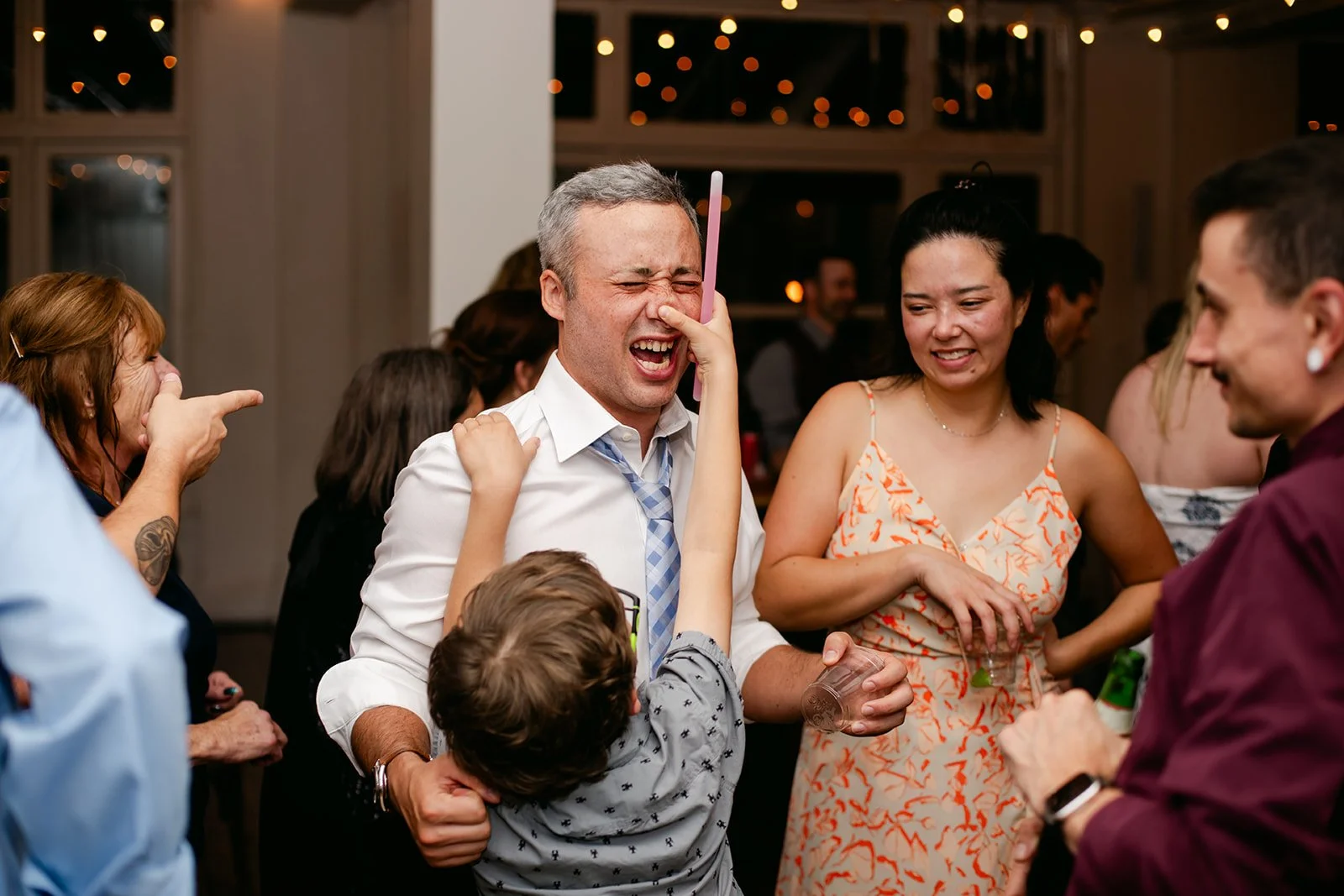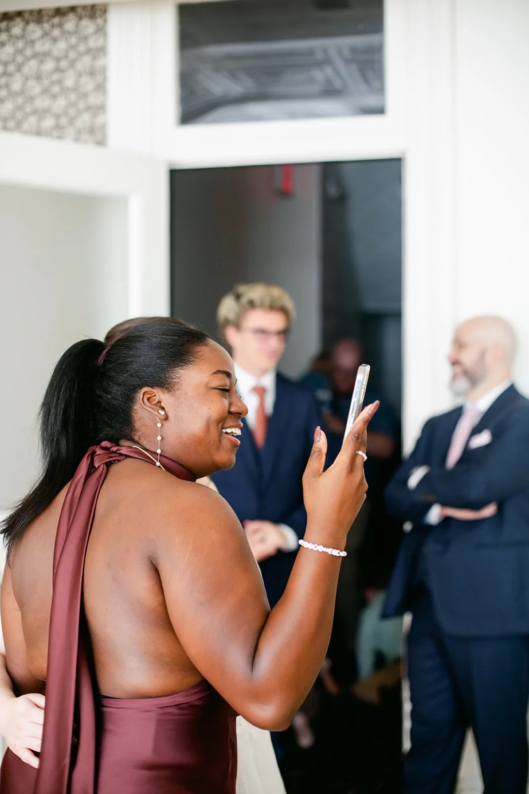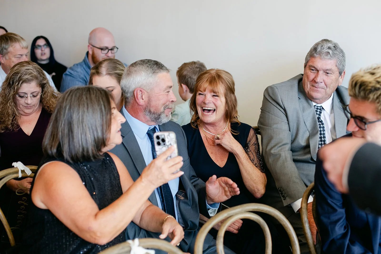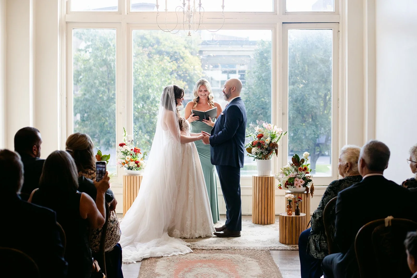 The ceremony was boho and beautiful — layered rugs anchoring the space, light pouring in, the whole room feeling relaxed and intentional at the same time. Samantha and Jason have a warmth between them that translates immediately through a lens, the kind of couple where you don't have to work very hard to find the feeling because it's just right there, all the time.