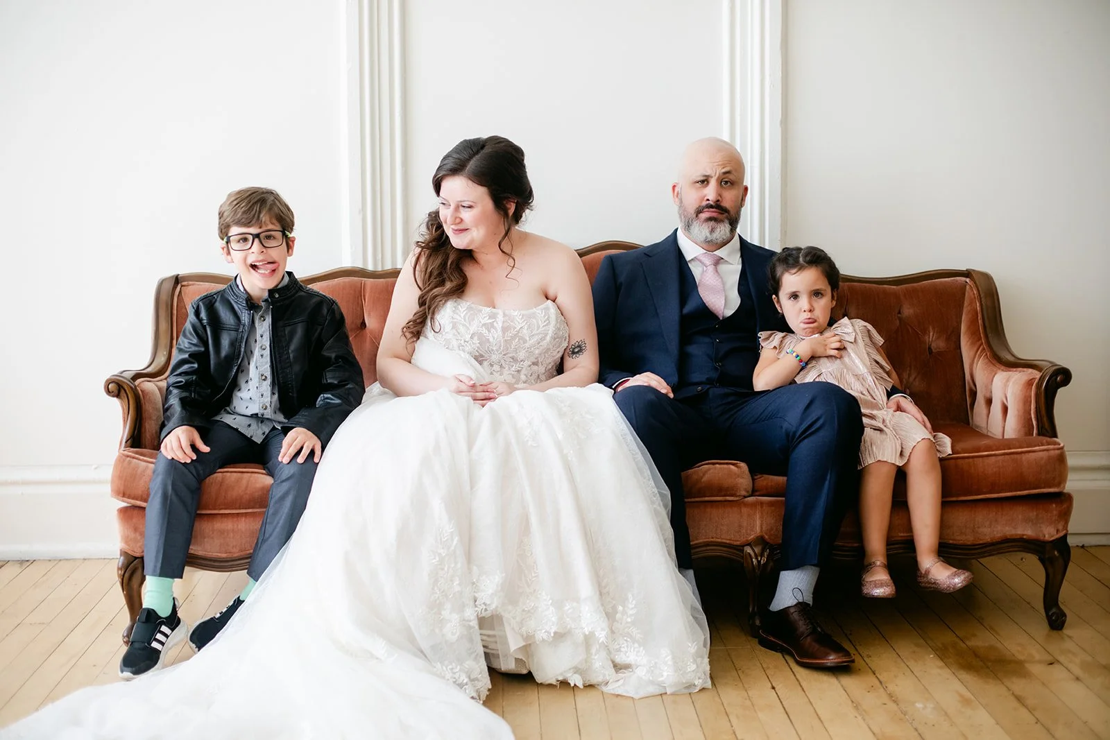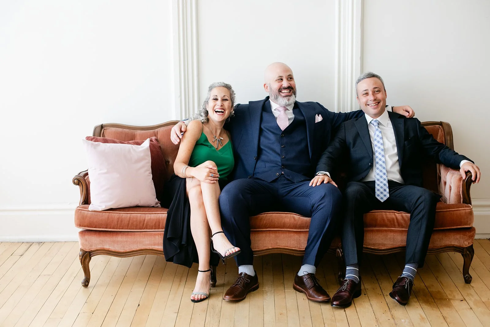 The light in that space is genuinely something special. Soft, even, generous — the kind of light that makes a photographer's job feel less like work and more like just pointing a camera at beautiful things. One of my absolute favorite frames from the entire day was a family portrait on the vintage velvet couch — the kind of image that feels timeless without trying to be, warm and real and completely unhurried. That couch deserves its own credit.