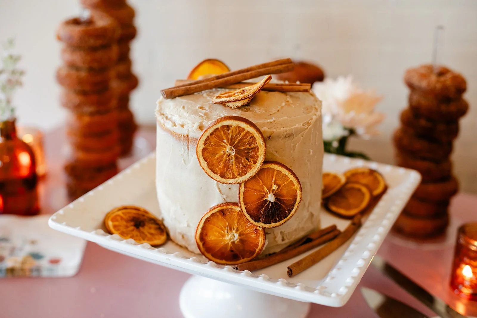 The cake deserves its own mention — decorated with dried orange slices and cinnamon sticks, it was honestly one of the prettiest I've ever seen. Warm, textured, rustic, and elegant all at once. It fit the space perfectly, and I photographed it accordingly.