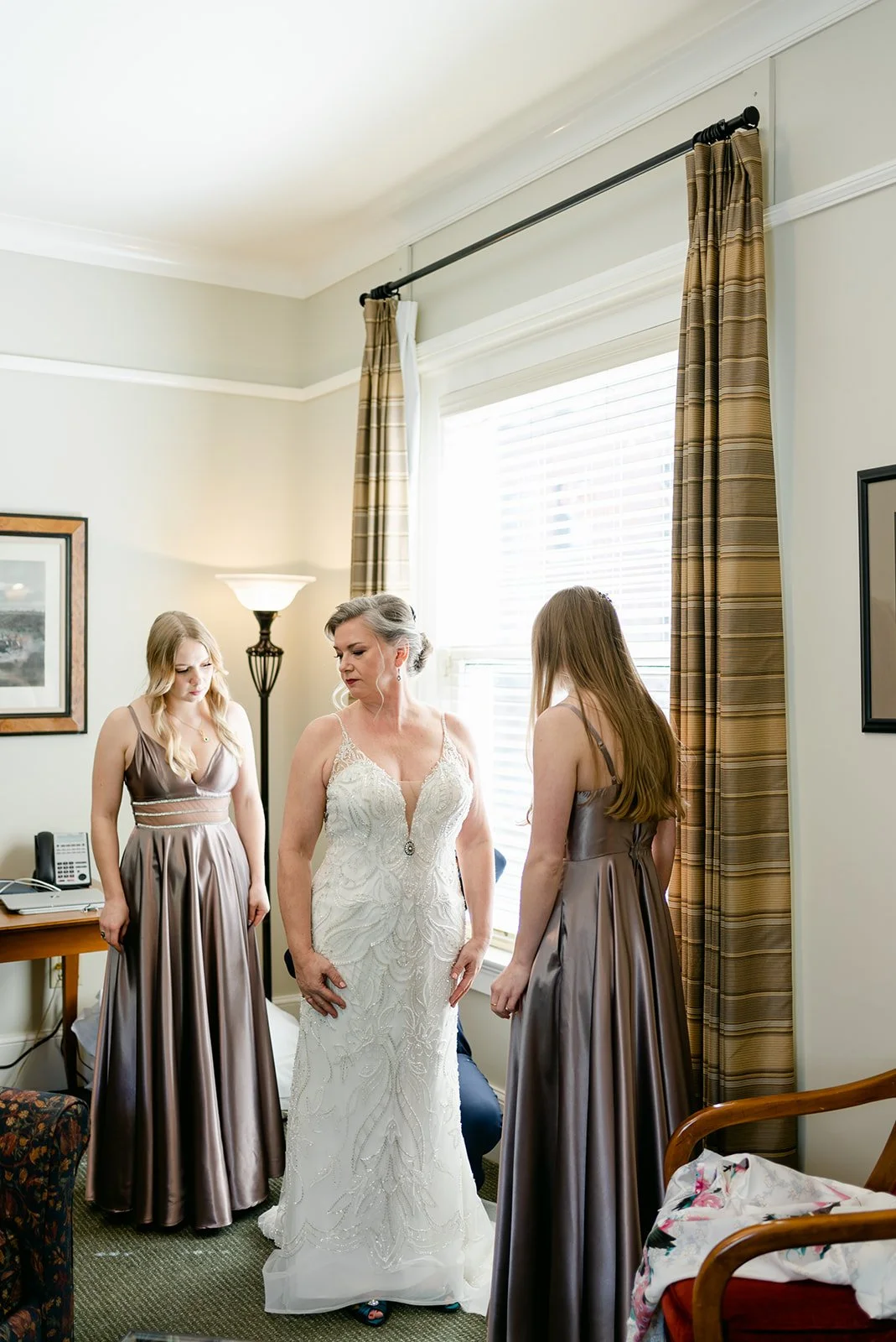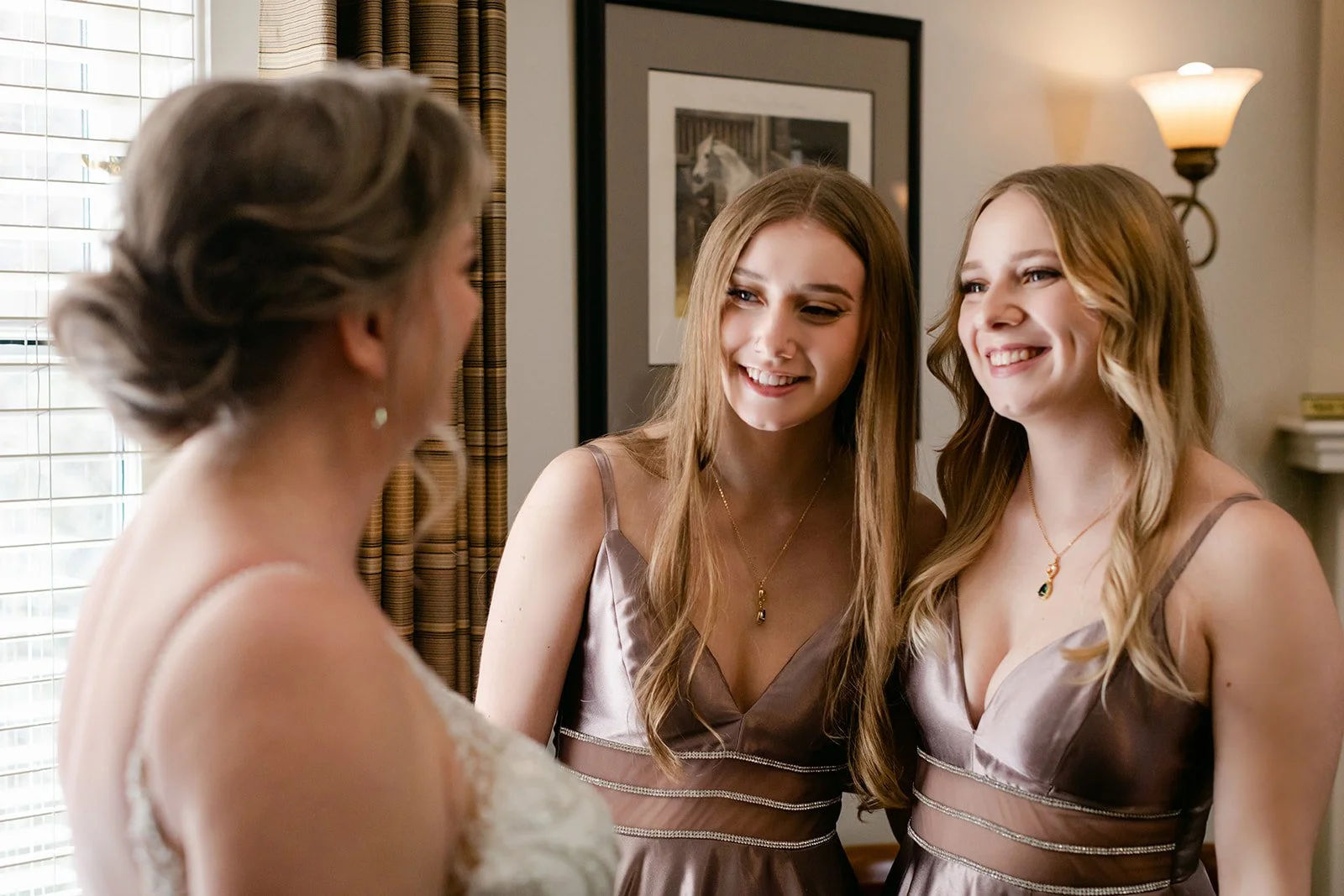 Rachel walked down the aisle to rainforest sounds — not music, not strings, just the sounds of rain and birds and something living — and it was one of the most quietly unexpected ceremony choices I have encountered. It set a tone that was contemplative and warm and completely unlike anything else. Her two daughters stood beside her as bridesmaids, which is the kind of detail that makes a ceremony feel like it belongs to an entire family rather than just two people.
