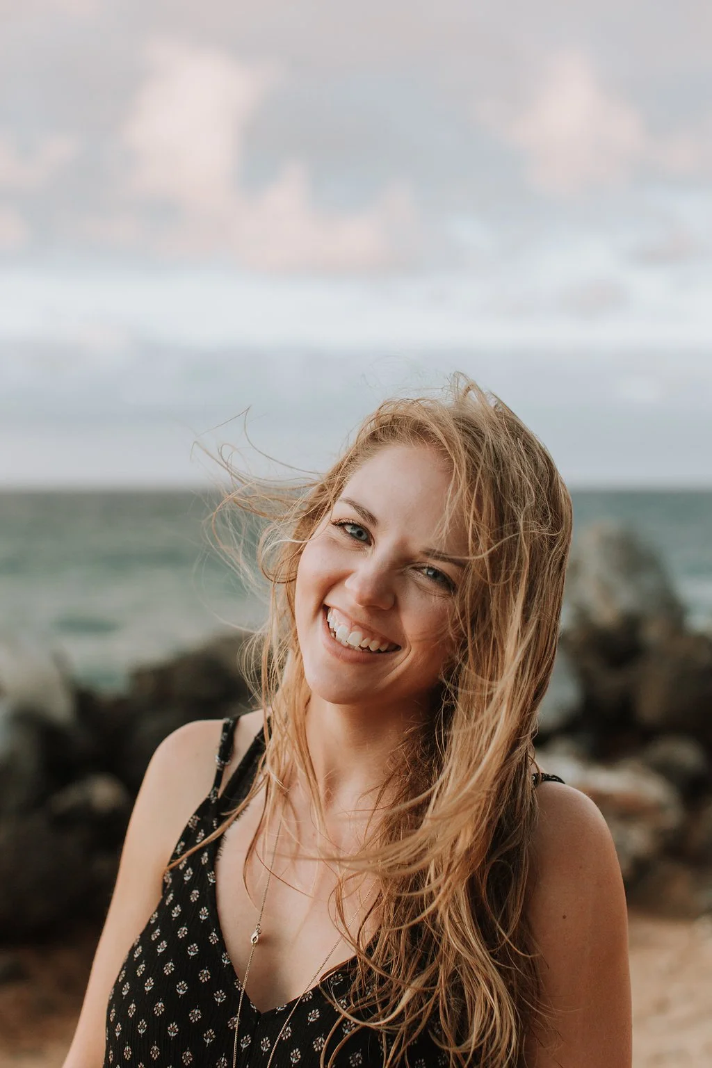 We met up at Baldwin Beach on Maui's north shore, and the setting did not disappoint. Soft golden hour light stretching out over the water, that big open Pacific sky, clusters of black lava rocks right where the sand meets the waves, and windblown ironwood trees along the back edge of the beach. It is the kind of place that does half of the work for you as a photographer.
