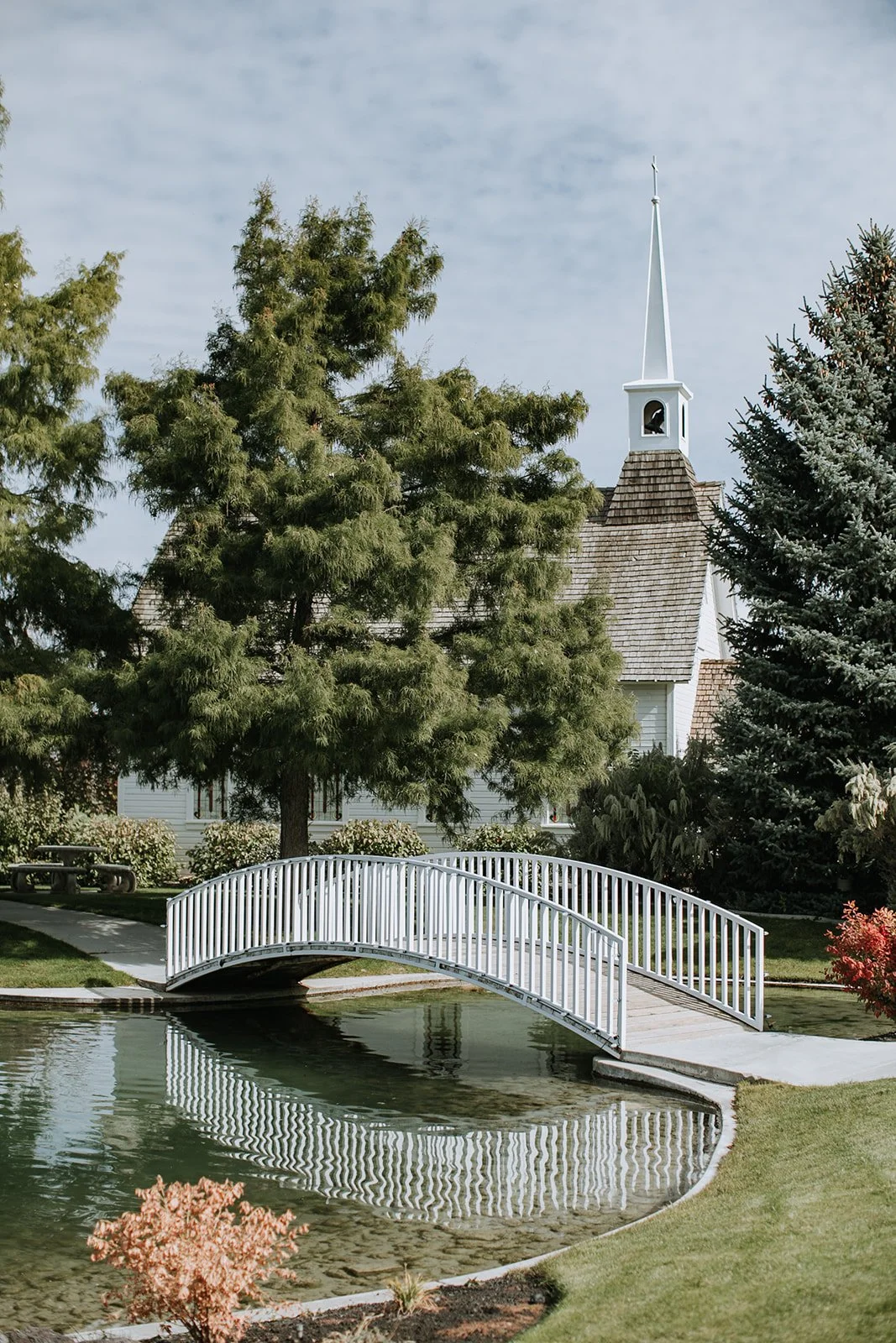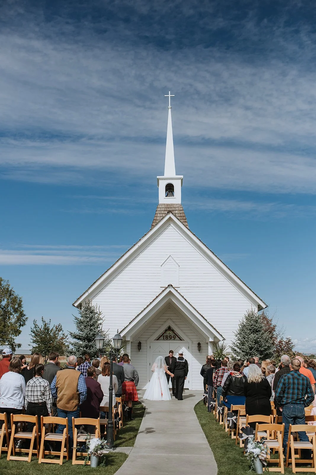 Still Water Hollow's 1899 chapel is simply one of the most beautiful ceremony settings in the Pacific Northwest. Wide blue sky, pine trees, a steeple that earns its place in every photo. Their first look happened in the covered wood structure on the property, and gave me portraits I won't stop thinking about for a long time.