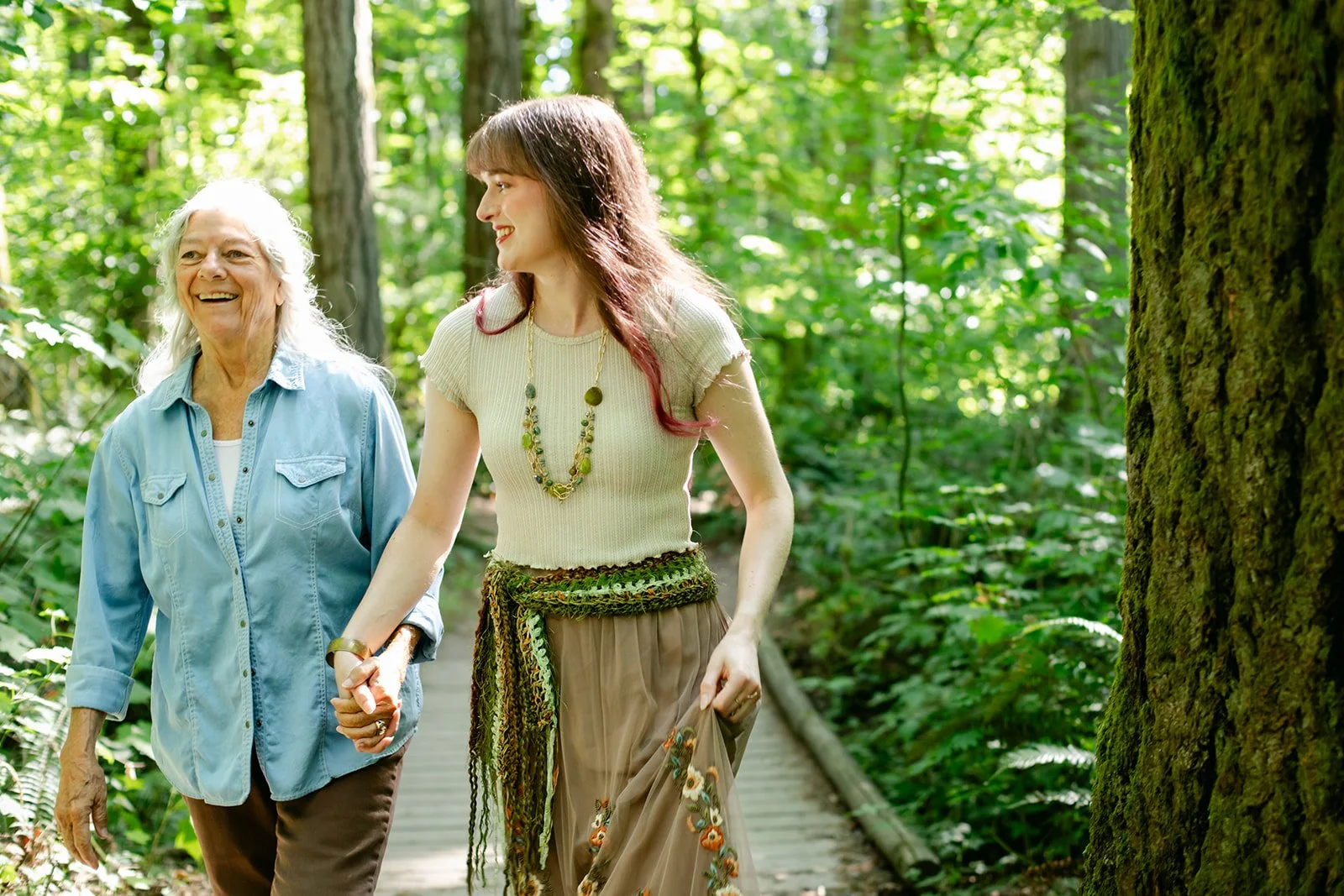 What struck me immediately was how natural they were together. There was no awkwardness, no warming up period — just two people who clearly adore each other, walking through the woods, holding hands, leaning their heads together. Alexis has this warmth about her, this openness, and her grandmother met every moment with the same energy. The laughter in these frames is so real it almost startled me behind the lens.