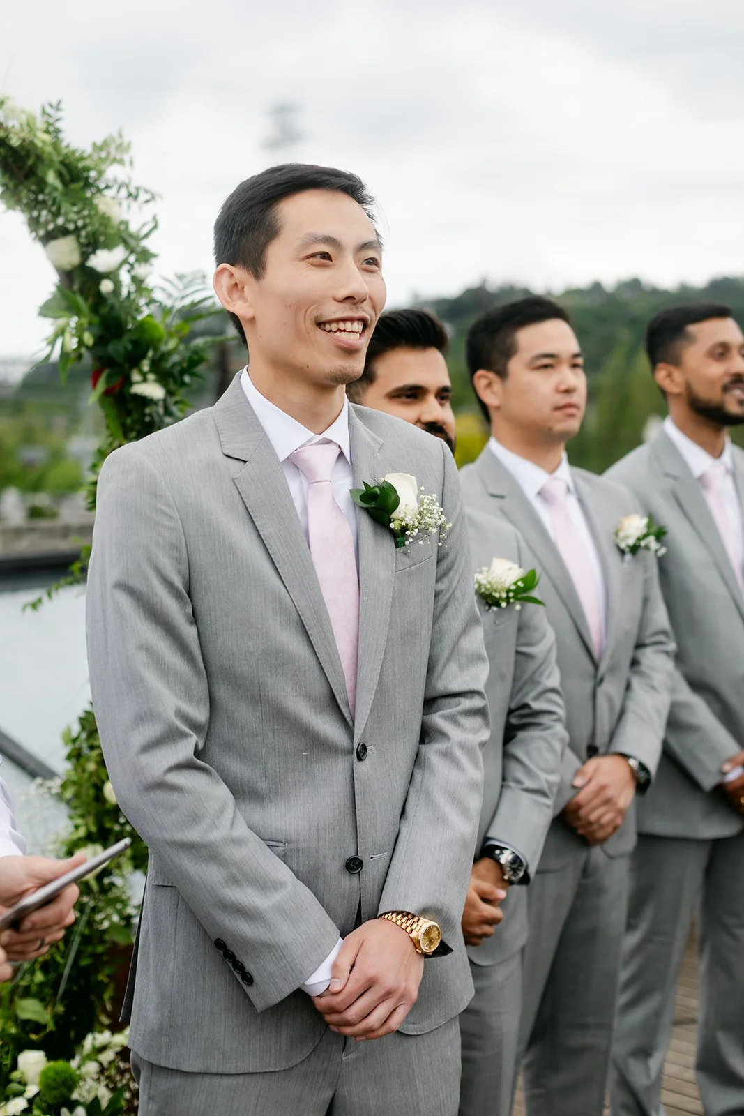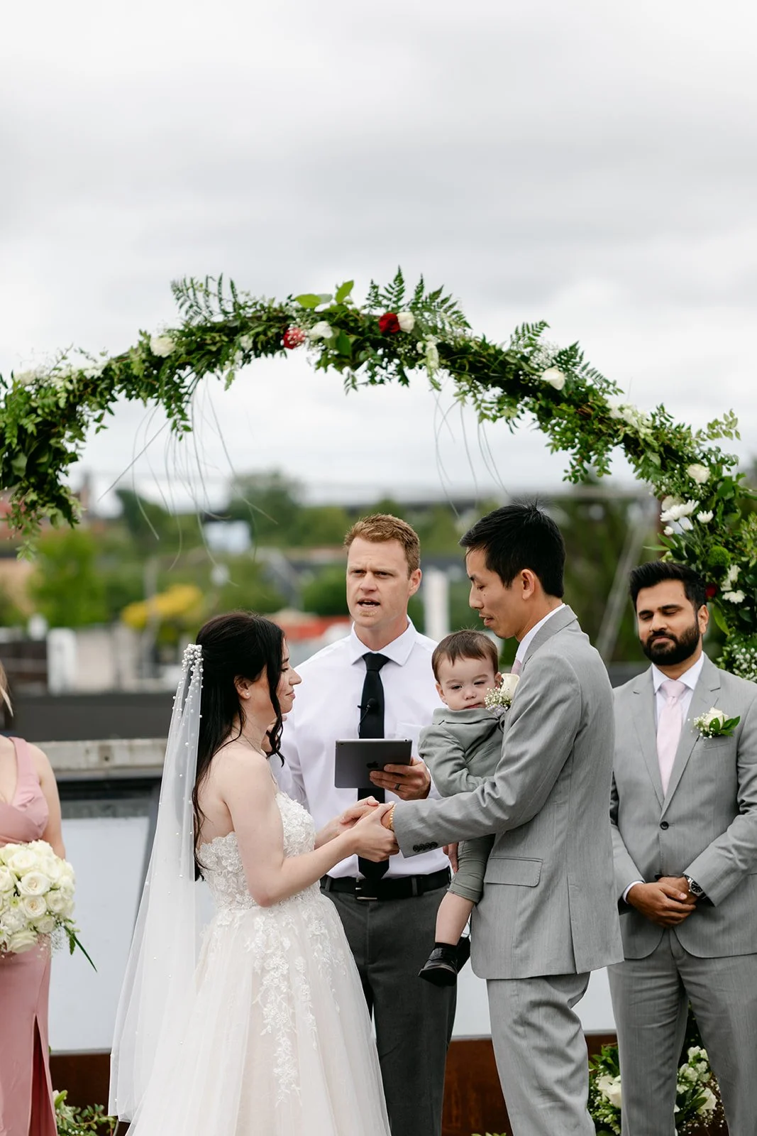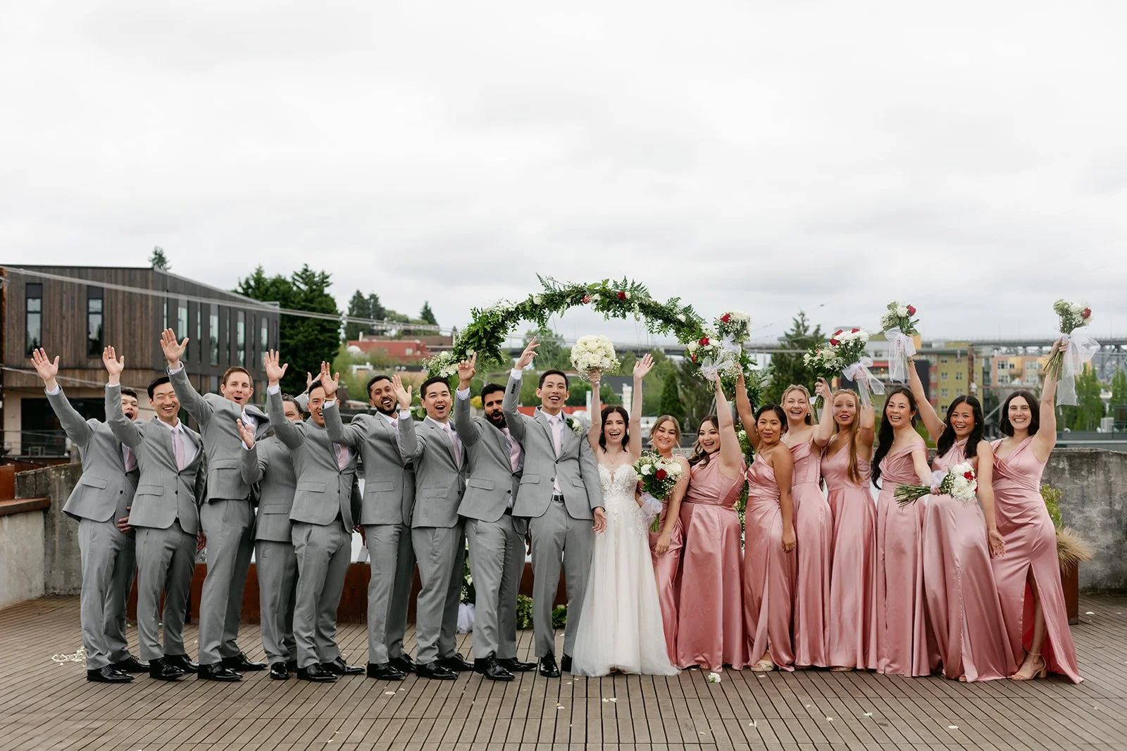 The ceremony happened on the rooftop, which is the only correct way to get married at the Fremont Foundry if the Seattle sky is cooperating — and on this day it was. Open air, city views stretching out in every direction, the kind of backdrop that makes you feel like the whole city is witnessing something. Kristen was stunning. Brian looked like a man who knew exactly how lucky he was. The whole thing felt elevated and intimate at the same time, which is a balance that's harder to achieve than it looks.