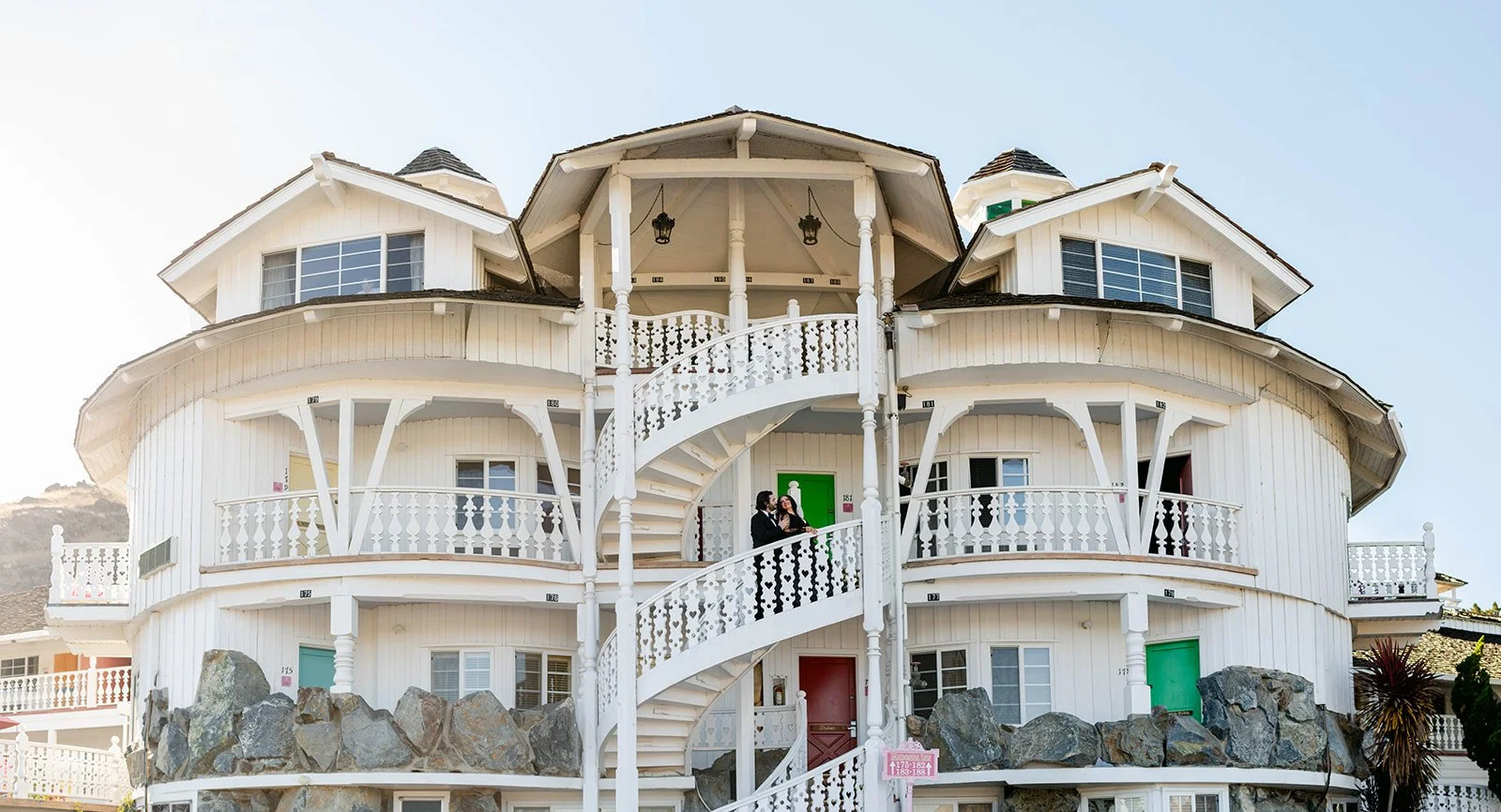 I've shot weddings in vineyards, barns, rooftop terraces, and beachside pavilions. But the moment a bride tells me she's getting married at the Madonna Inn in San Luis Obispo, I feel something shift — a little giddiness, a little creative hunger. Because this place isn't just a venue. It's a fever dream. A love letter written in bubblegum pink and gold filigree and waterfall showers carved from raw stone. And it is, without question, one of the most photogenic places I've ever had the privilege of working in.
