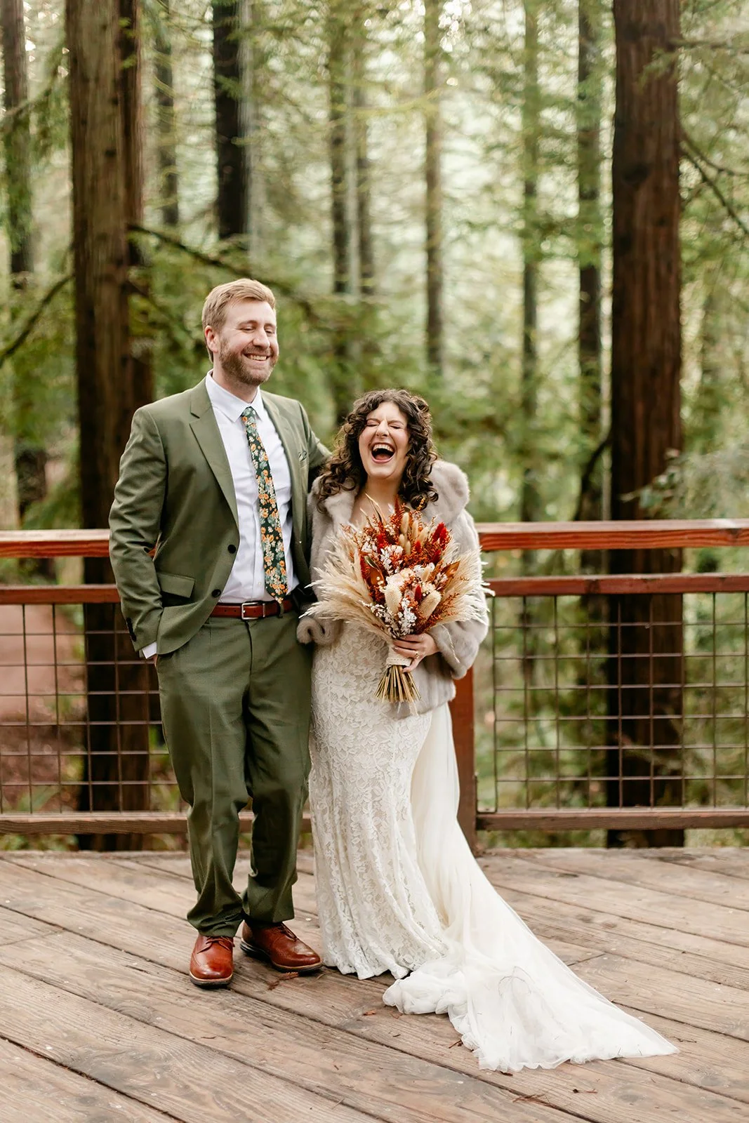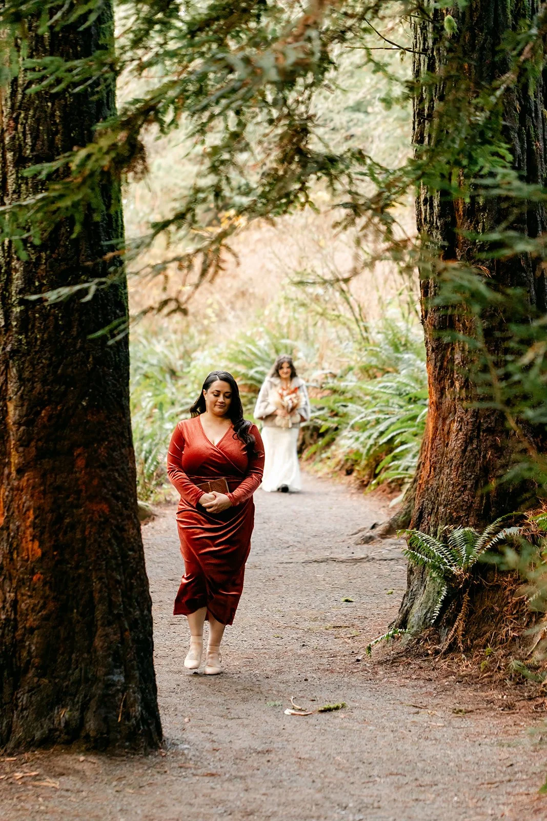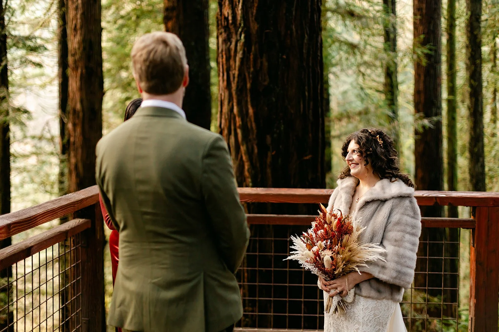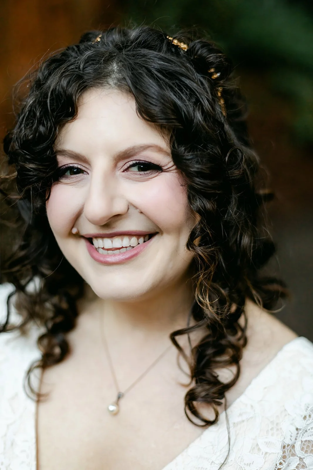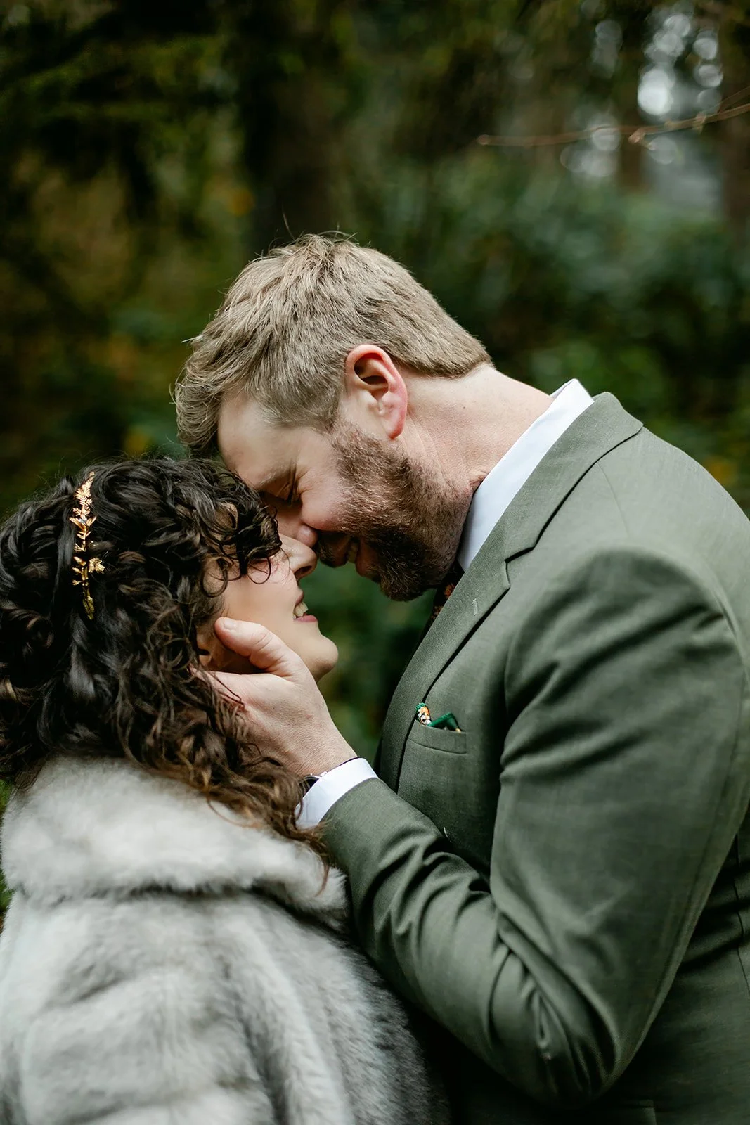 Vendor Spotlight: Sara's look was in the hands of Lisa Boehm, a Portland based hair, makeup, and skincare artist whose whole approach is built around making you look like yourself, only better. Soft, skin forward makeup and modern timeless hair styling that photographs beautifully without ever feeling overdone. For a December elopement in the redwoods, it was exactly right. If you are looking for a Portland wedding hair and makeup artist who genuinely gets it, Lisa is your person. Find her at lisaboehmbeauty.com.