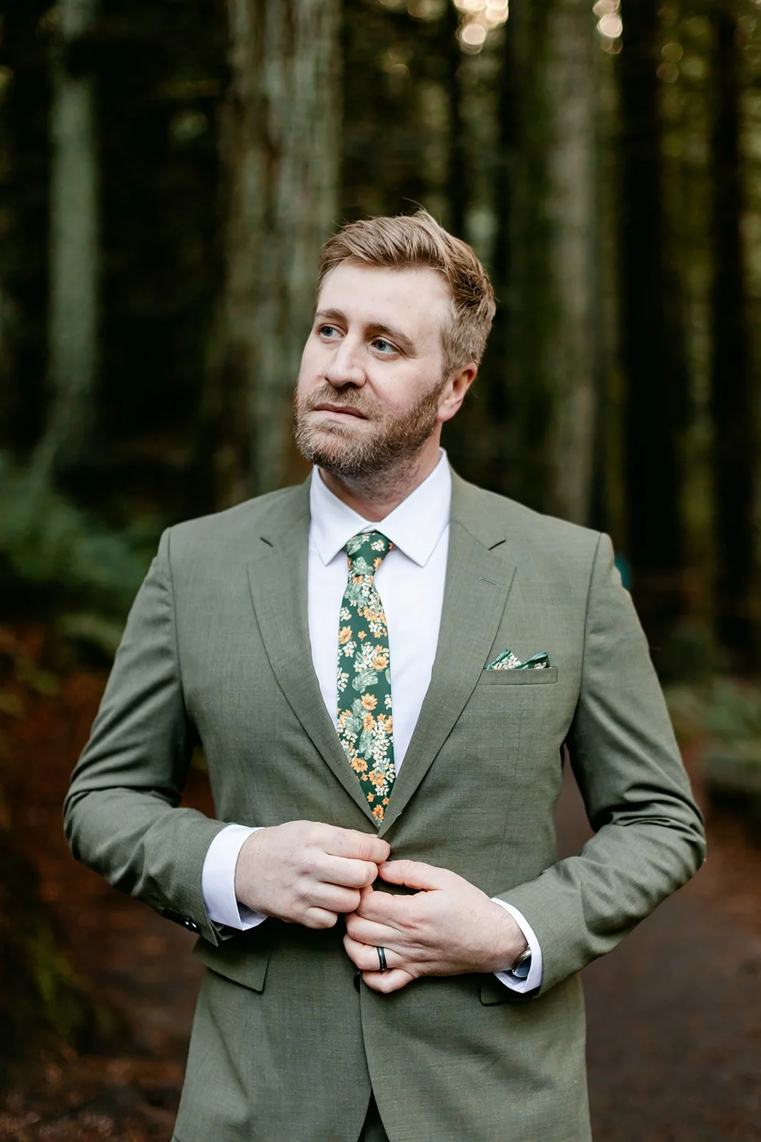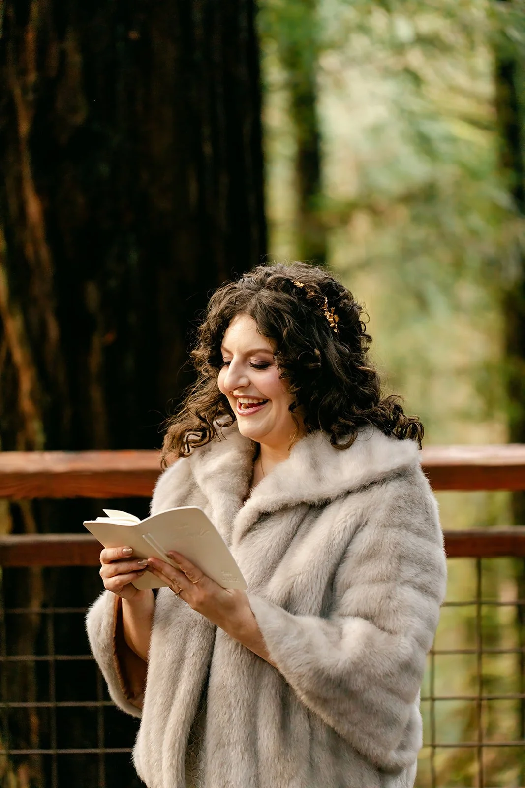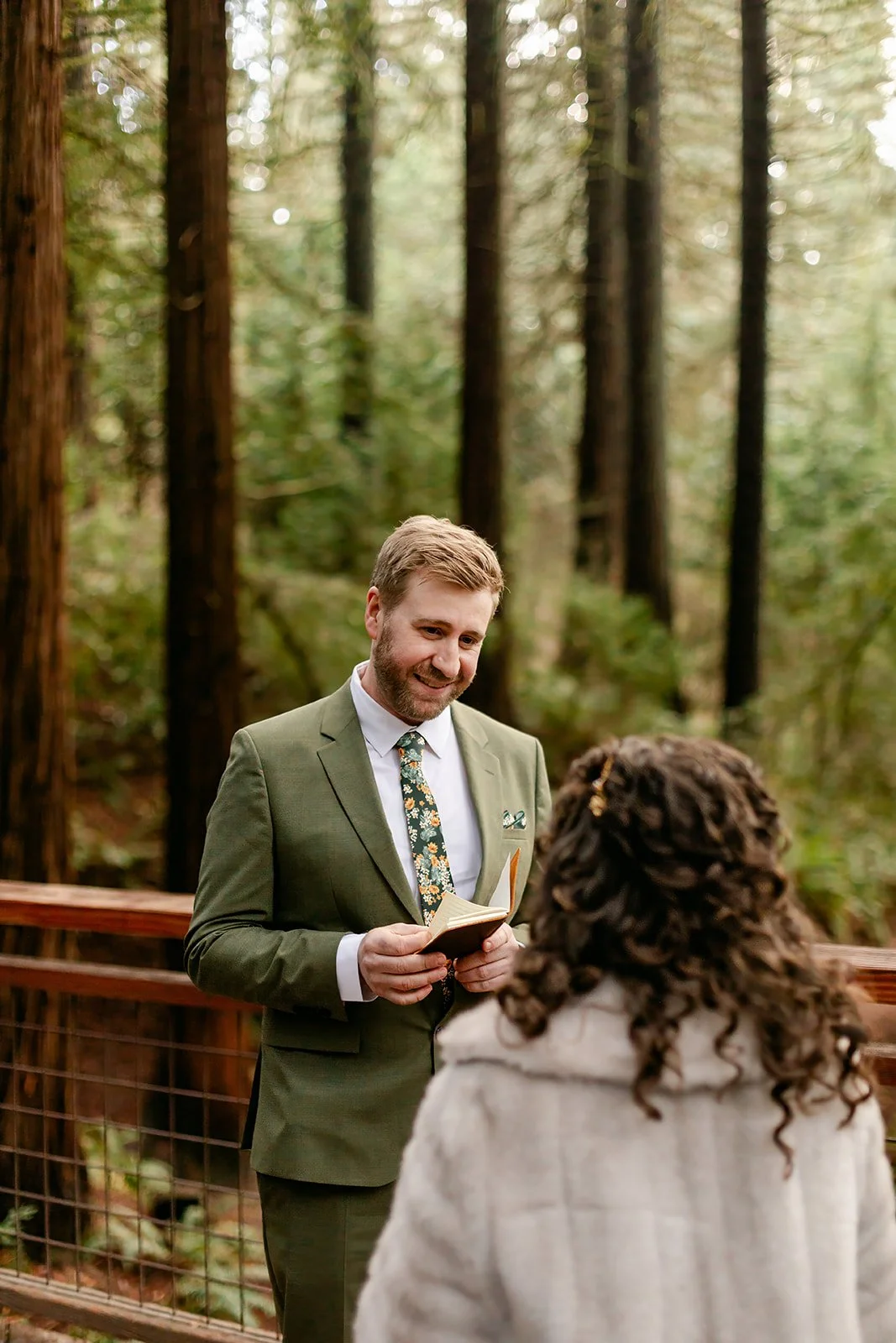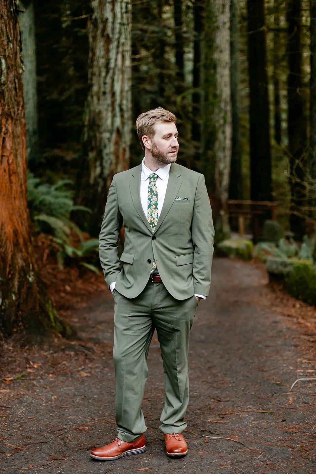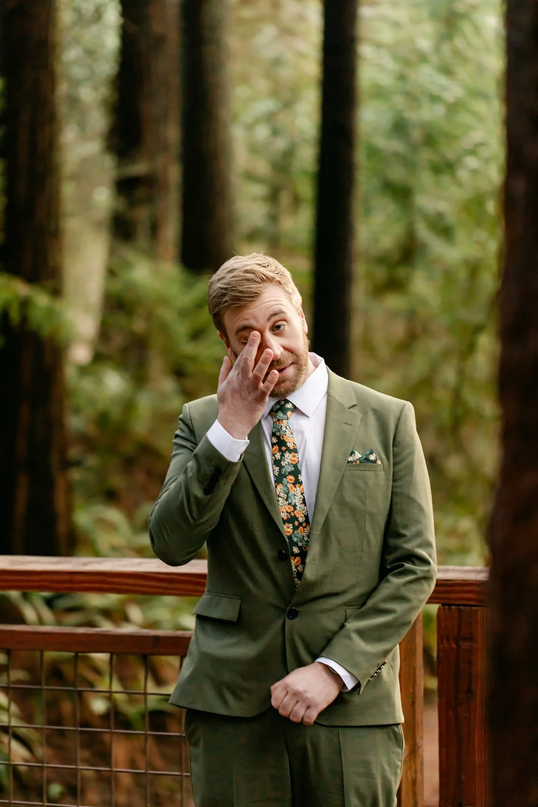 Vendor Spotlight: Sara's look was in the hands of Lisa Boehm, a Portland based hair, makeup, and skincare artist whose whole approach is built around making you look like yourself, only better. Soft, skin forward makeup and modern timeless hair styling that photographs beautifully without ever feeling overdone. For a December elopement in the redwoods, it was exactly right. If you are looking for a Portland wedding hair and makeup artist who genuinely gets it, Lisa is your person. Find her at lisaboehmbeauty.com.
