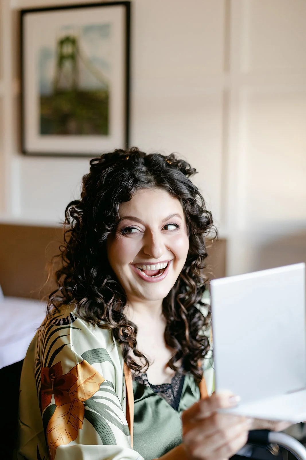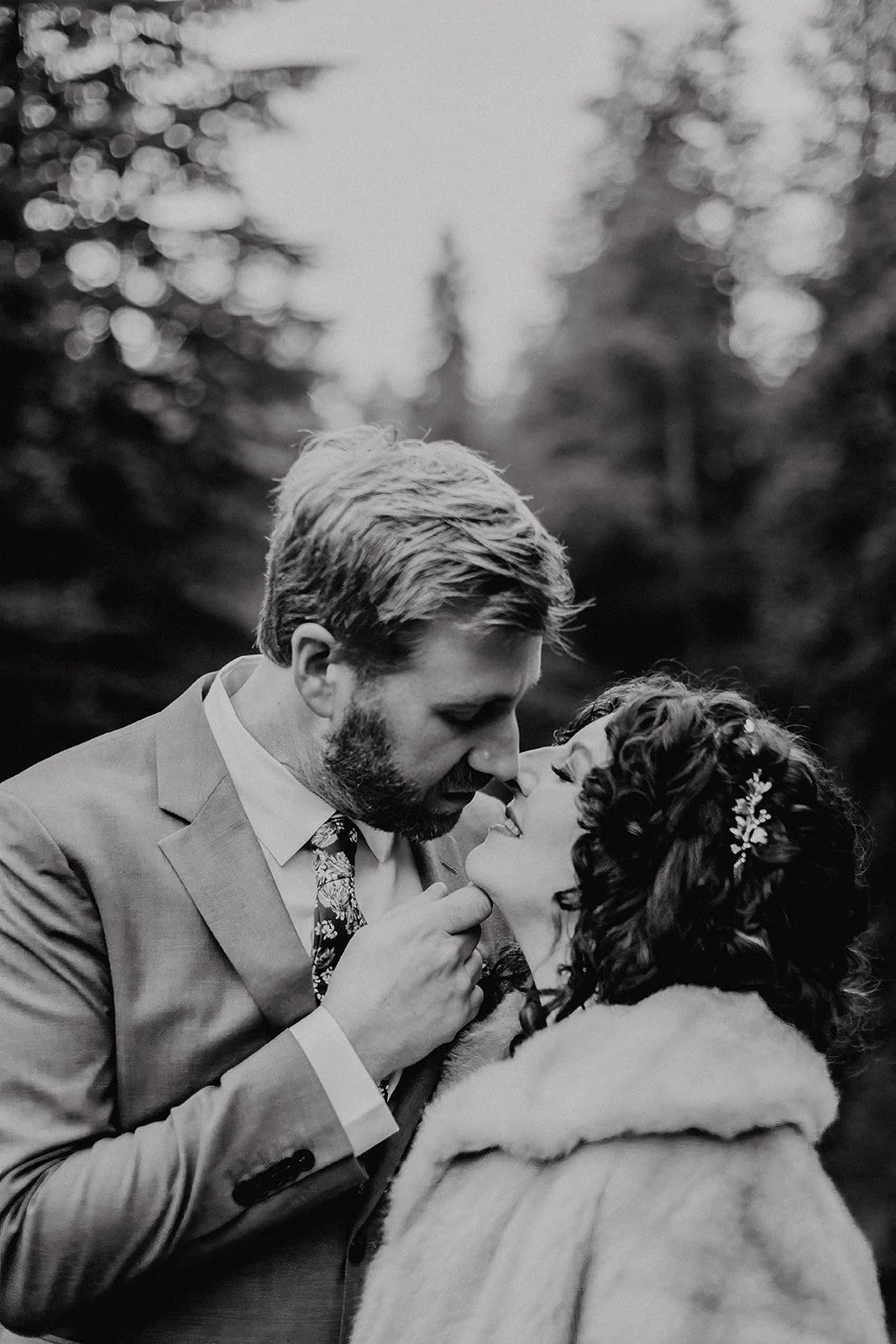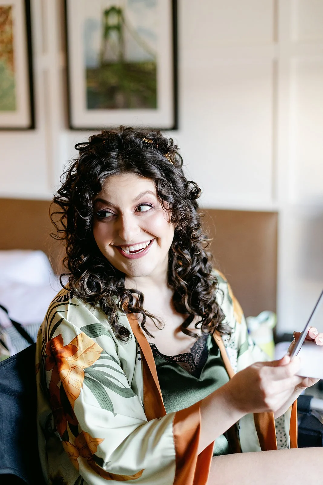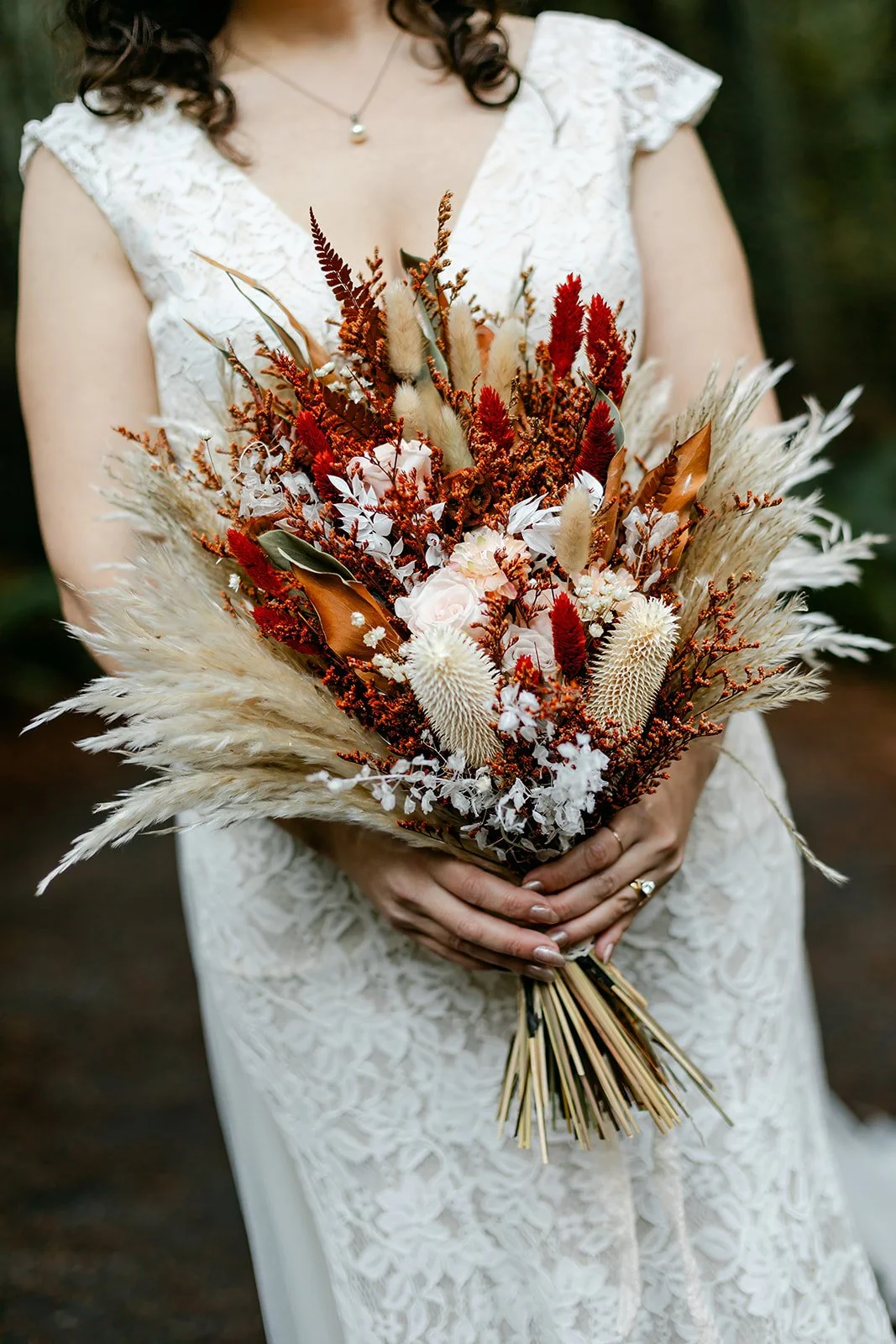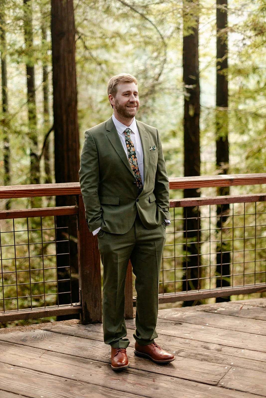 Vendor Spotlight: Sara's look was in the hands of Lisa Boehm, a Portland based hair, makeup, and skincare artist whose whole approach is built around making you look like yourself, only better. Soft, skin forward makeup and modern timeless hair styling that photographs beautifully without ever feeling overdone. For a December elopement in the redwoods, it was exactly right. If you are looking for a Portland wedding hair and makeup artist who genuinely gets it, Lisa is your person. Find her at lisaboehmbeauty.com.