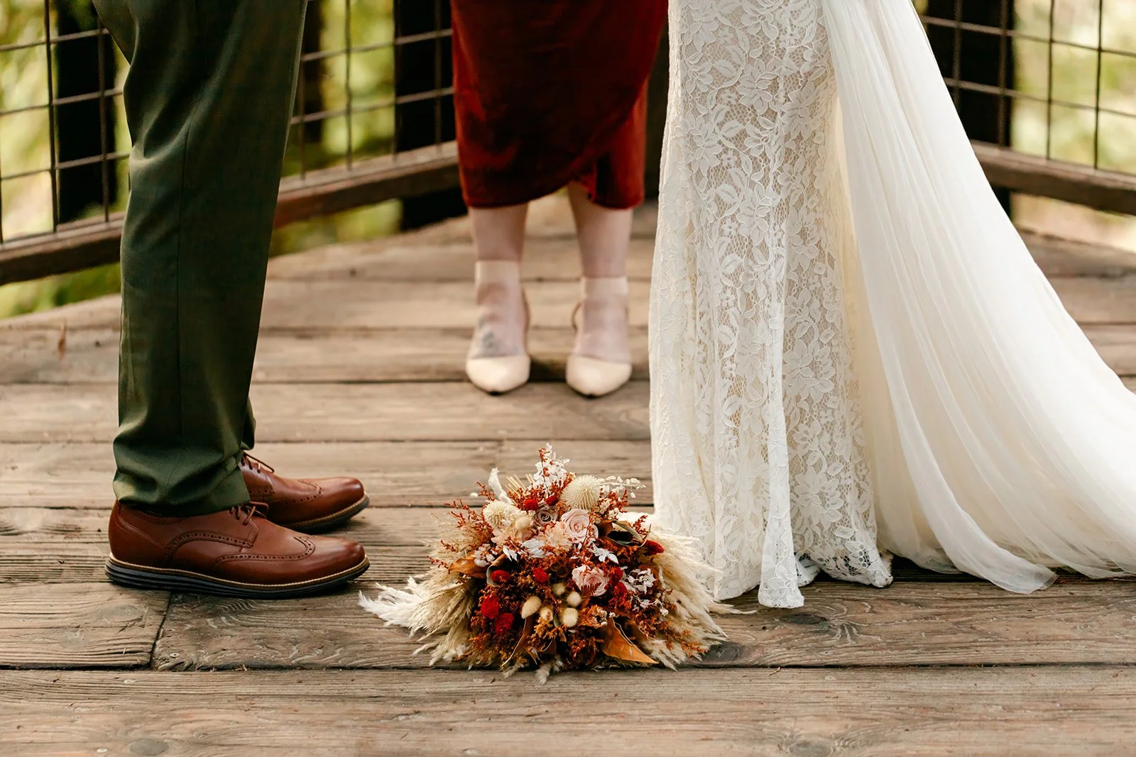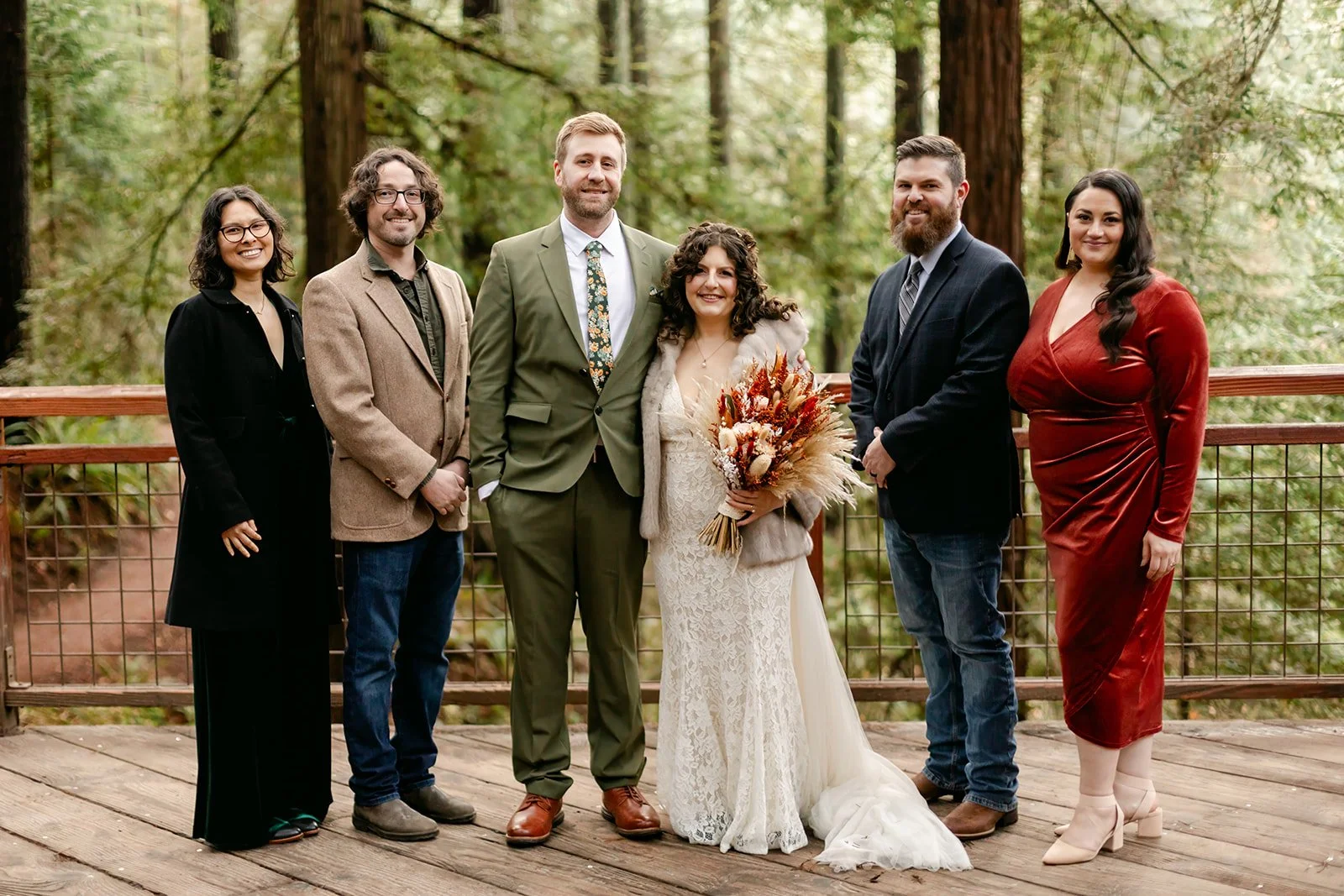 Sara and Miles had six of her closest people with her. That was it. No seating charts, no catering staff, no DJ. Just the people who mattered most, standing in the trees on a December afternoon while her best friend officiated the ceremony. There is something about that kind of intentional smallness that hits differently through a lens. Every face in that circle meant something. Every reaction was real and unguarded and completely present.