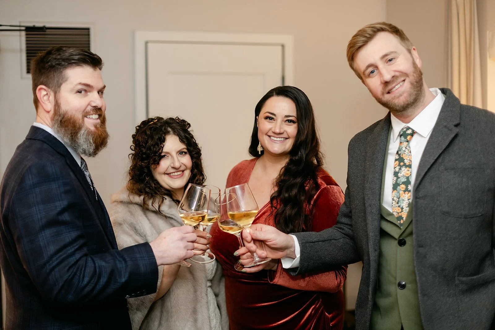 After the ceremony we drove back into the city and ended the night at Le Pigeon, which if you know Portland, you know is exactly the right call. The table was full, the food was exceptional, and at some point Sara and Miles opened a bottle of wine they had bought together on their very first date. They had been holding onto it, waiting for the right moment. If a December elopement in the redwoods surrounded by your six favorite people is not the right moment, I genuinely do not know what is.