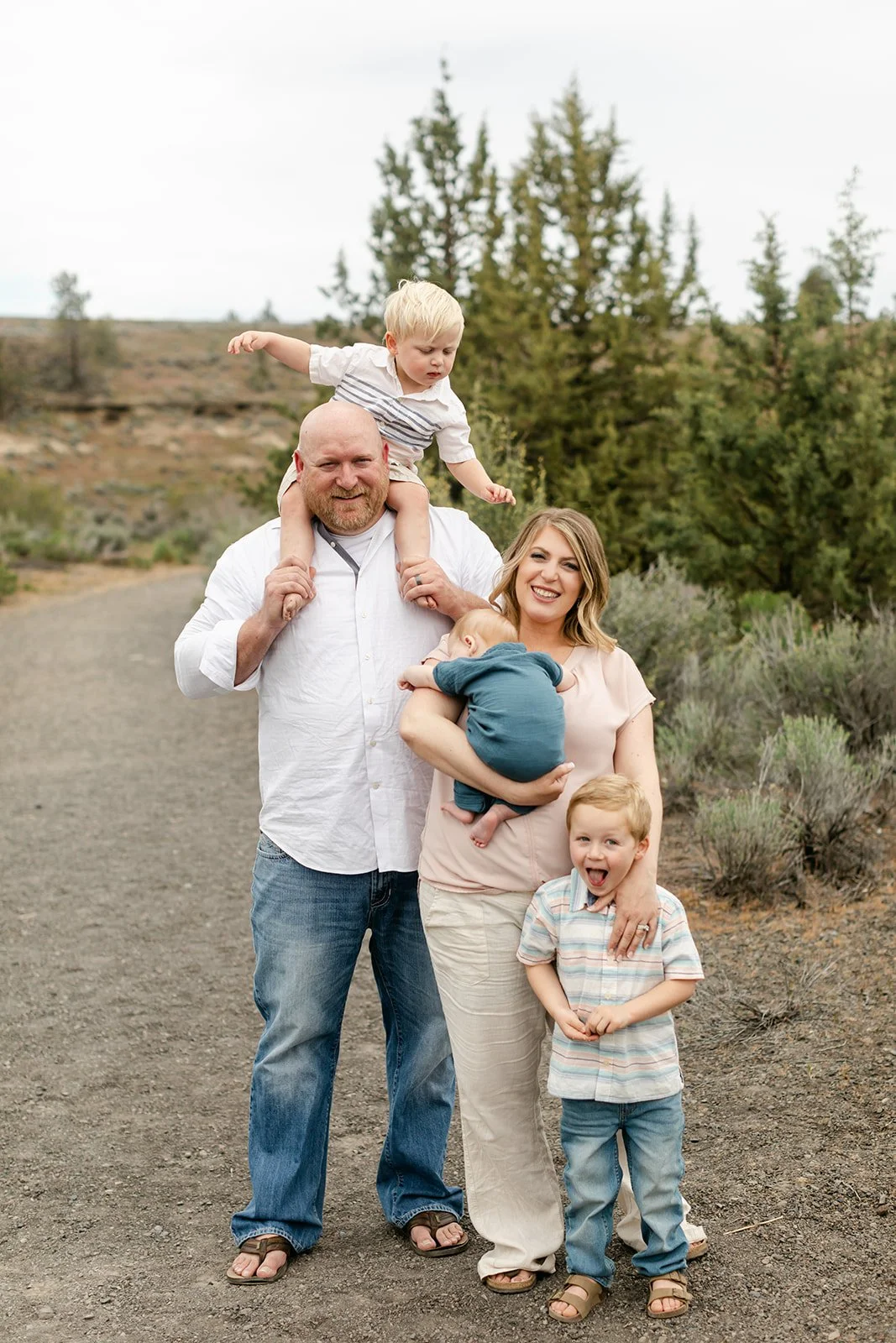 If you're looking for a Bend, Oregon location for extended family portraits, the high desert landscape delivers something you simply cannot get anywhere else — that wide open sky, the texture of the sagebrush, the pines rising up behind everyone like a natural backdrop that never needs any adjusting.