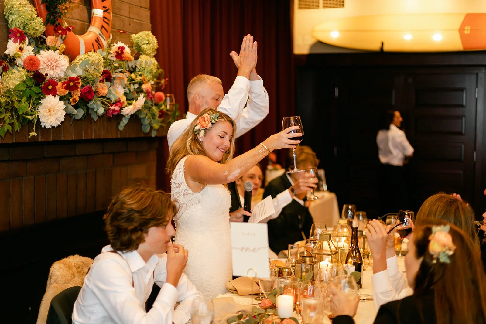 Then we danced. And when the night had wound down in the way good wedding nights do — gradually, reluctantly — everyone made their way back down to the beach for a bonfire. The kind where you don't really want to leave, where the conversation gets quieter and the fire gets lower and nobody checks their phone.