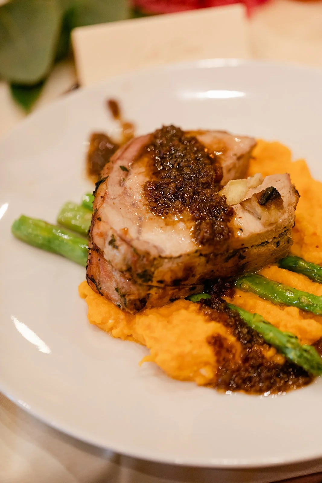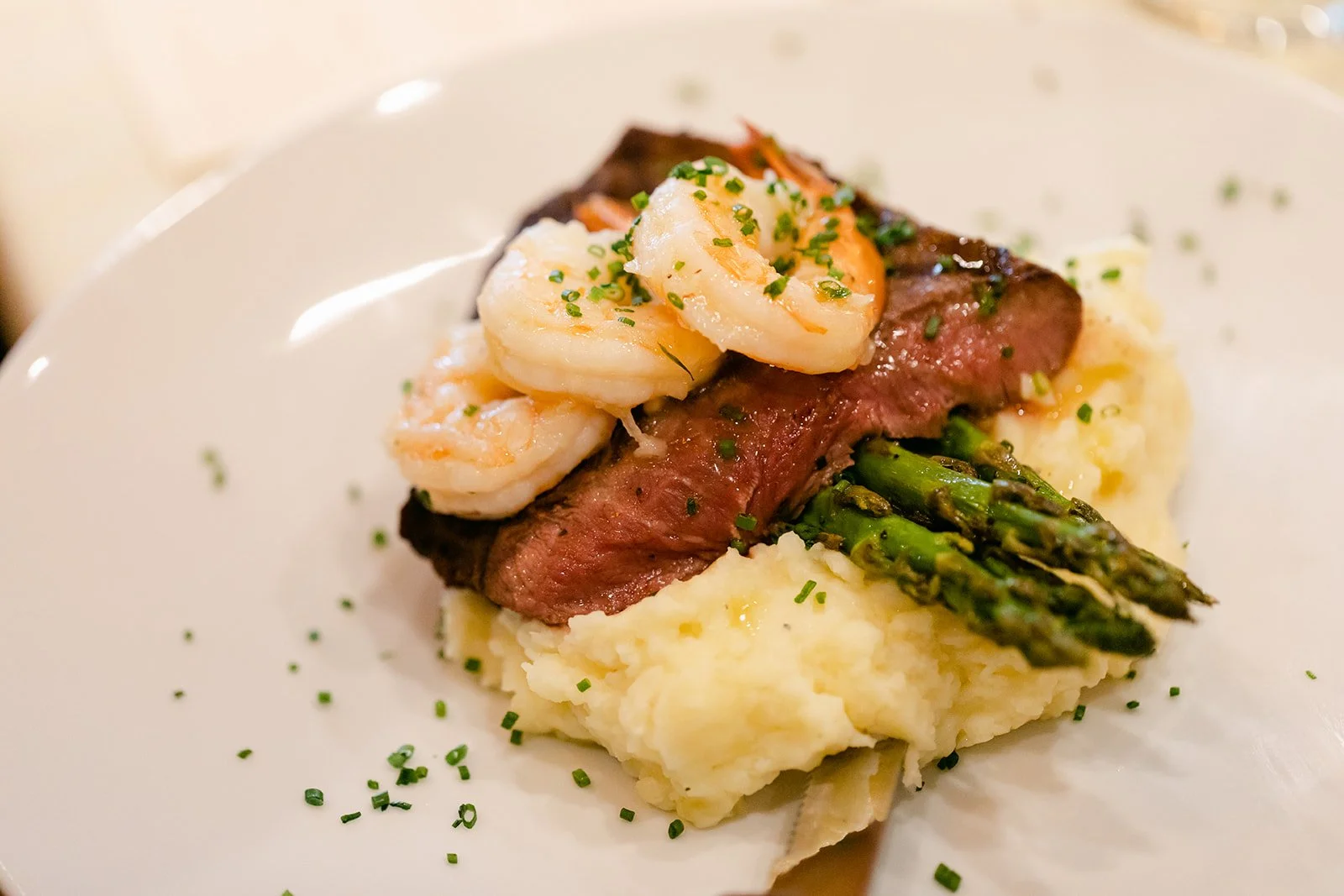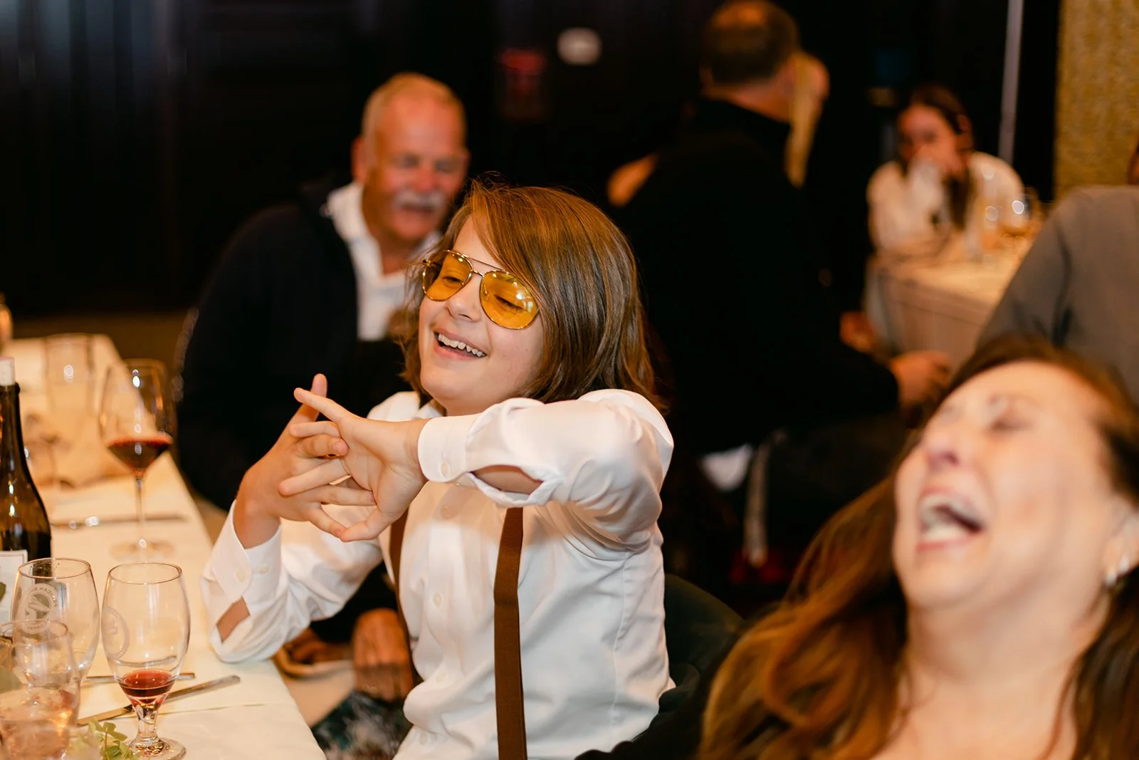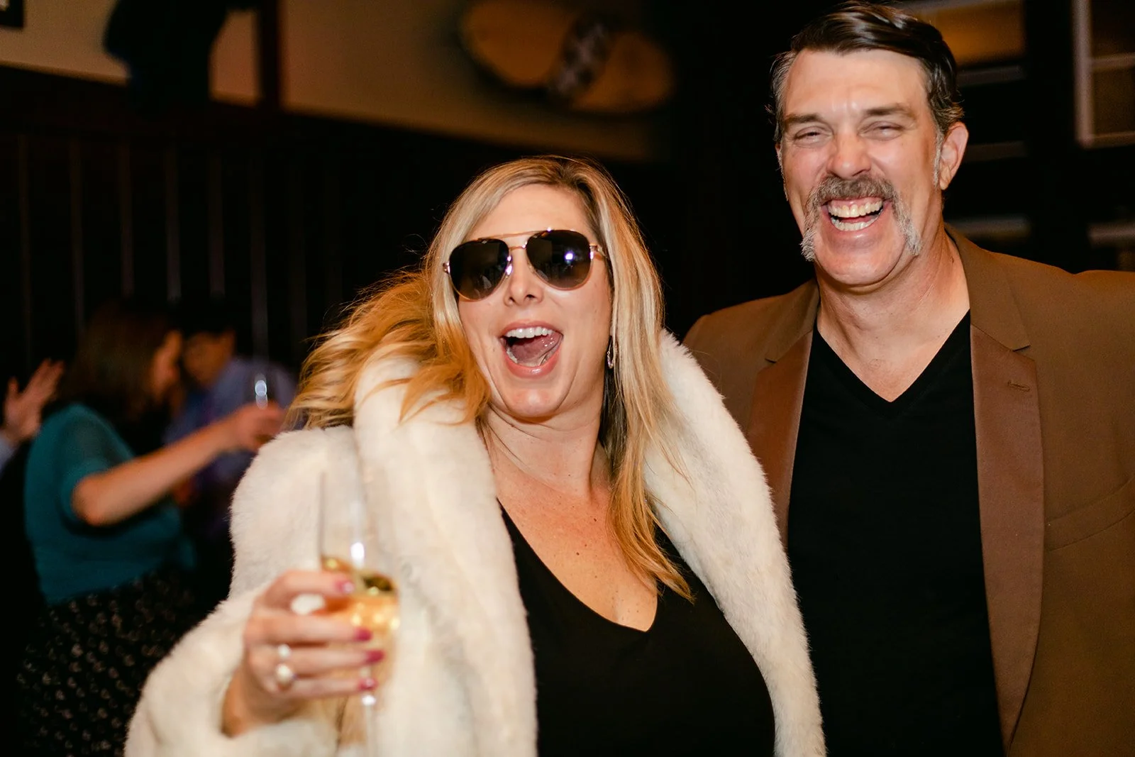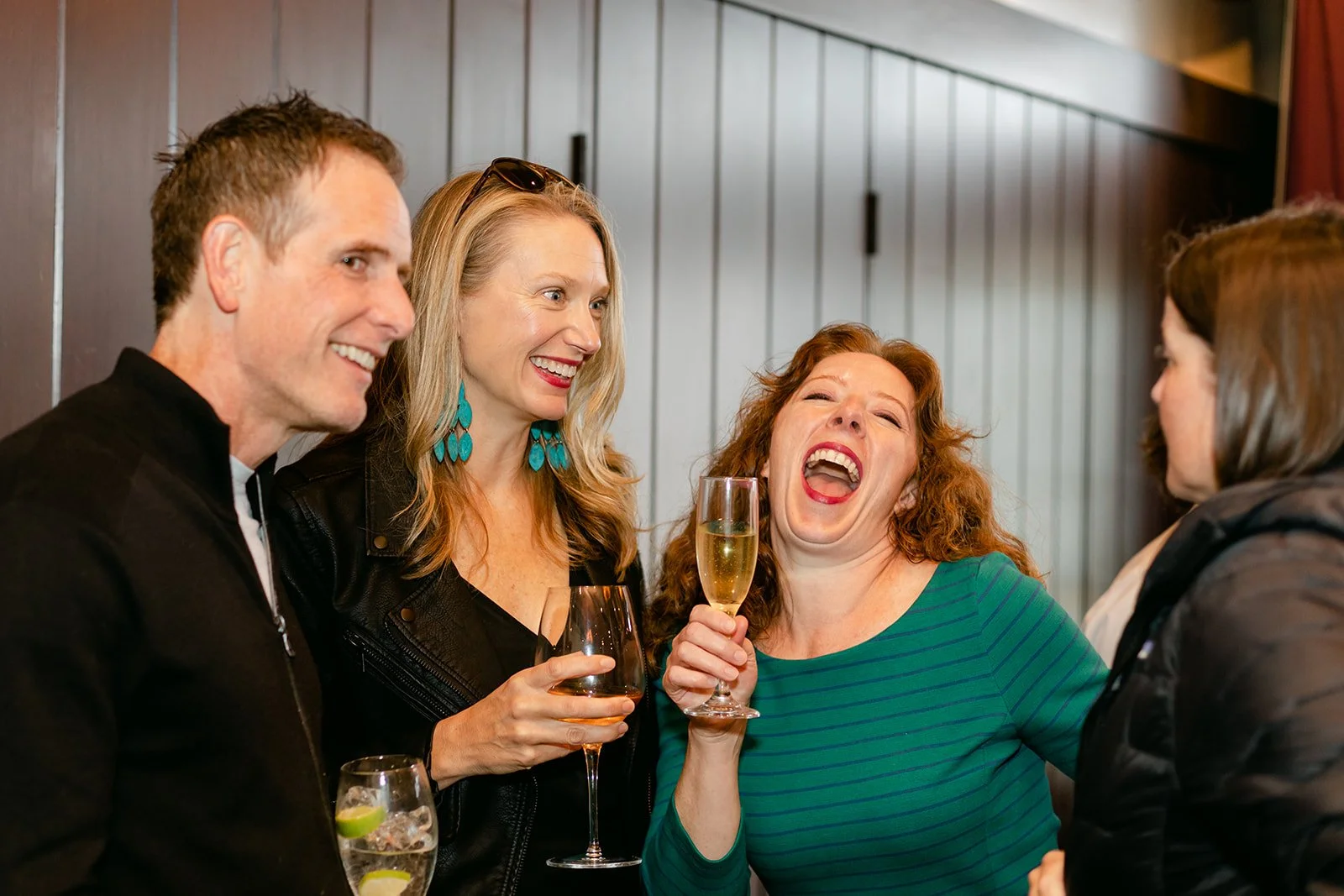 The reception moved inside to Pelican Brewing's beautiful dining room, which manages to feel warm and intimate even with the full expanse of the Pacific visible through the windows. The menu was a proper surf and turf — the kind of meal that makes you slow down and actually pay attention to what you're eating. Between courses, guests spilled out onto the patio overlooking the ocean for cornhole and conversation, champagne in hand, the afternoon light going golden over the water.