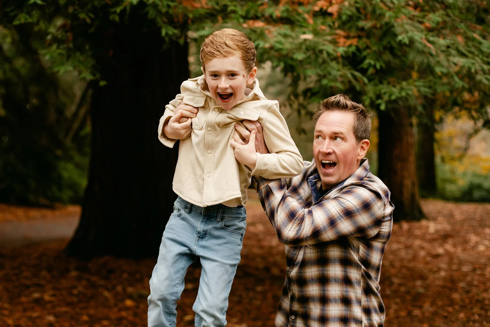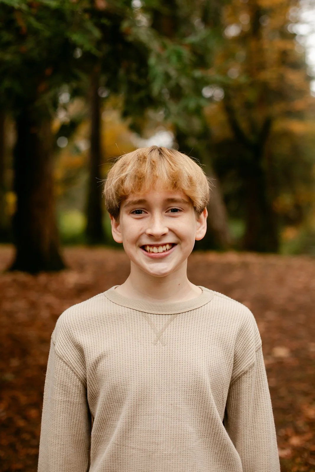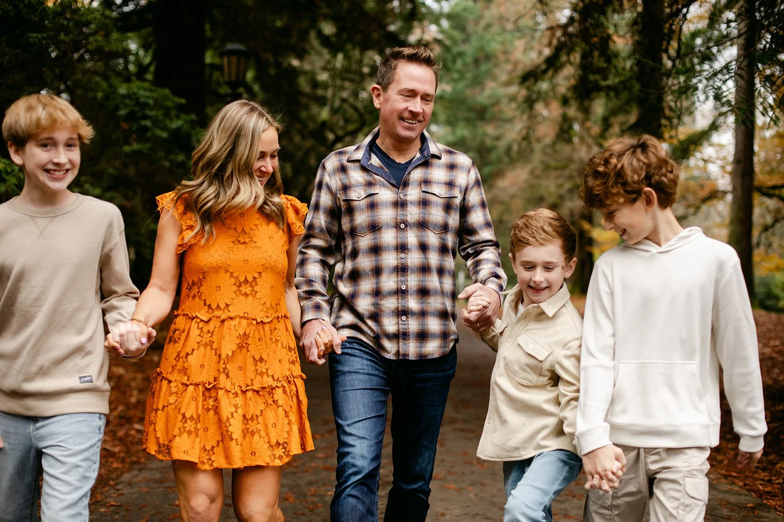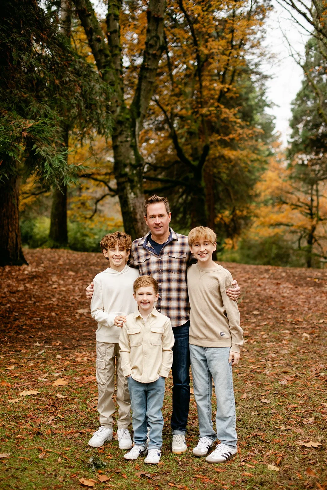 Laurelhurst is one of those Portland gems that earns its reputation every fall. Towering trees, open lawns blanketed in rust and amber, winding paths that beg to be walked — it's a natural studio that does half the work for you. On an overcast afternoon, the muted light wraps everything in this soft, even glow that's almost impossible to replicate any other way. The boys didn't care about any of that, of course. They were too busy seeing who could jump the highest.