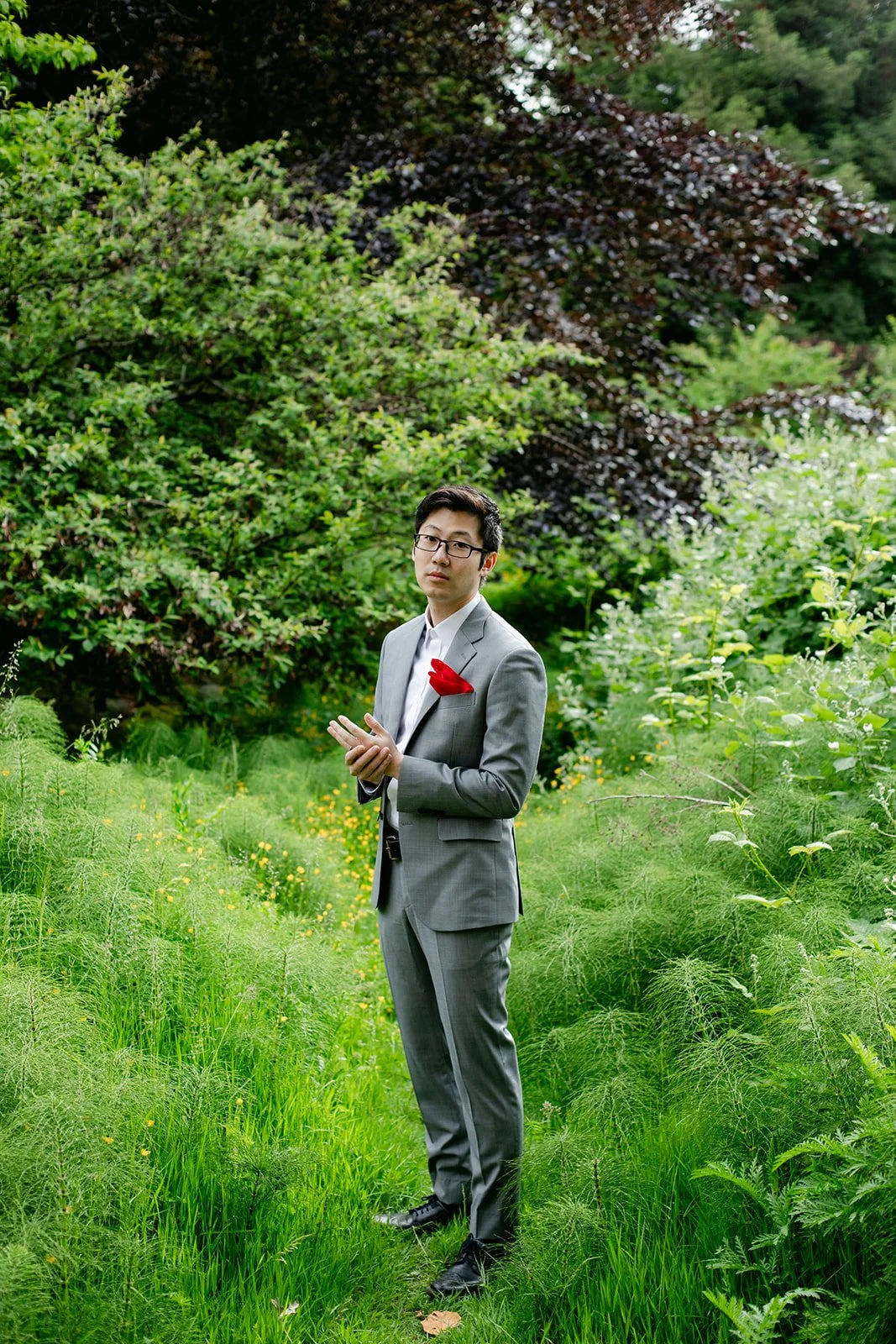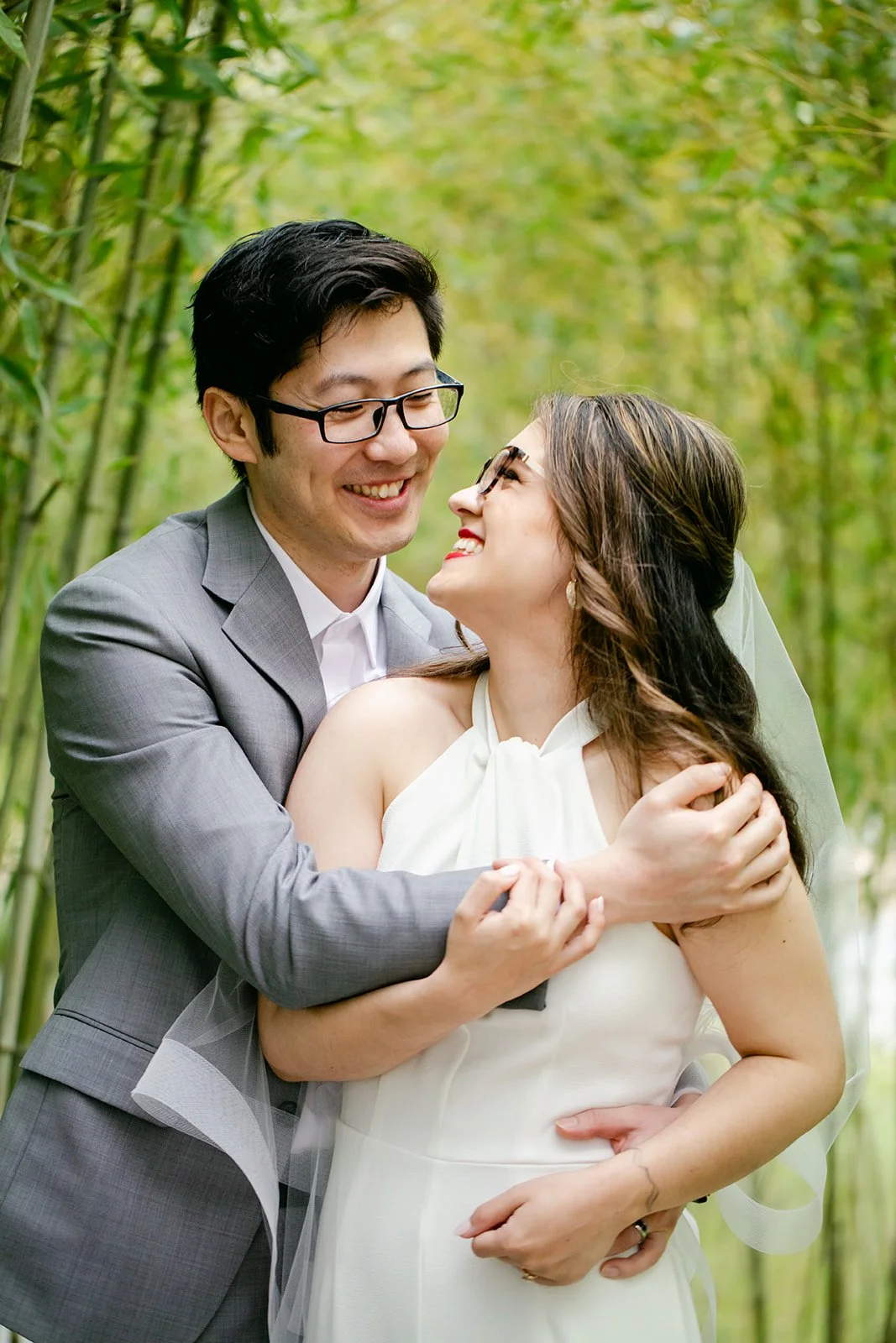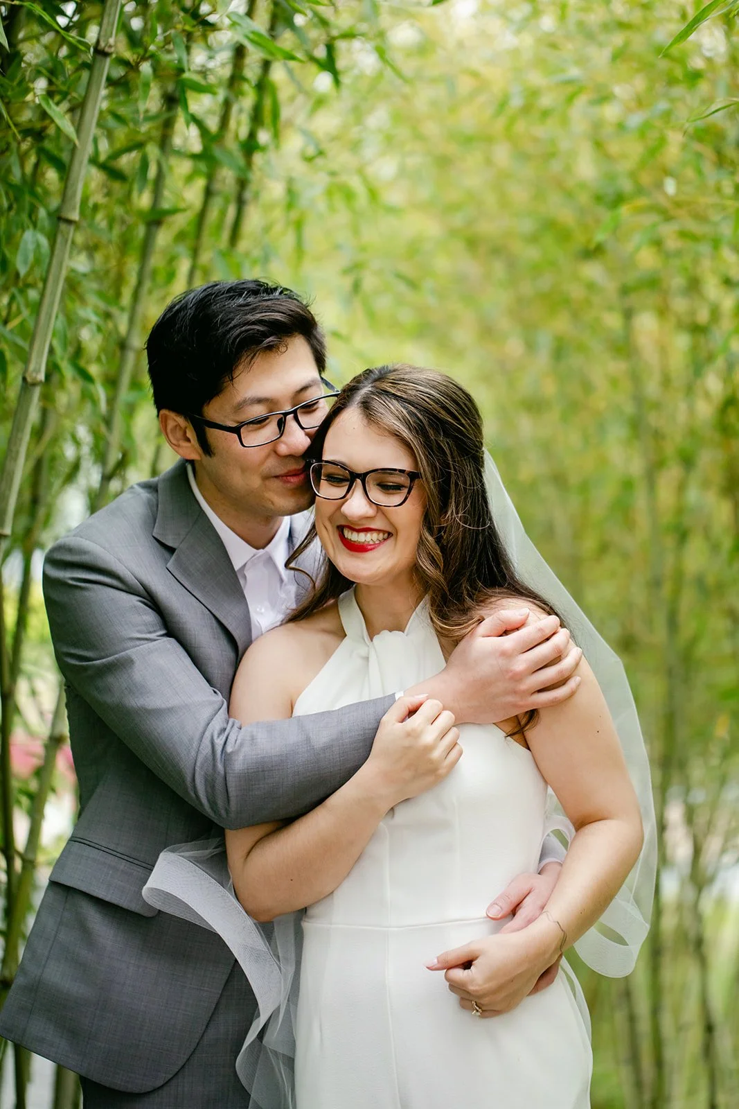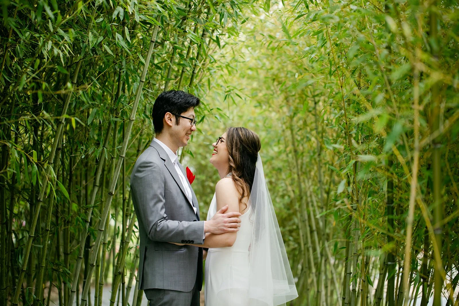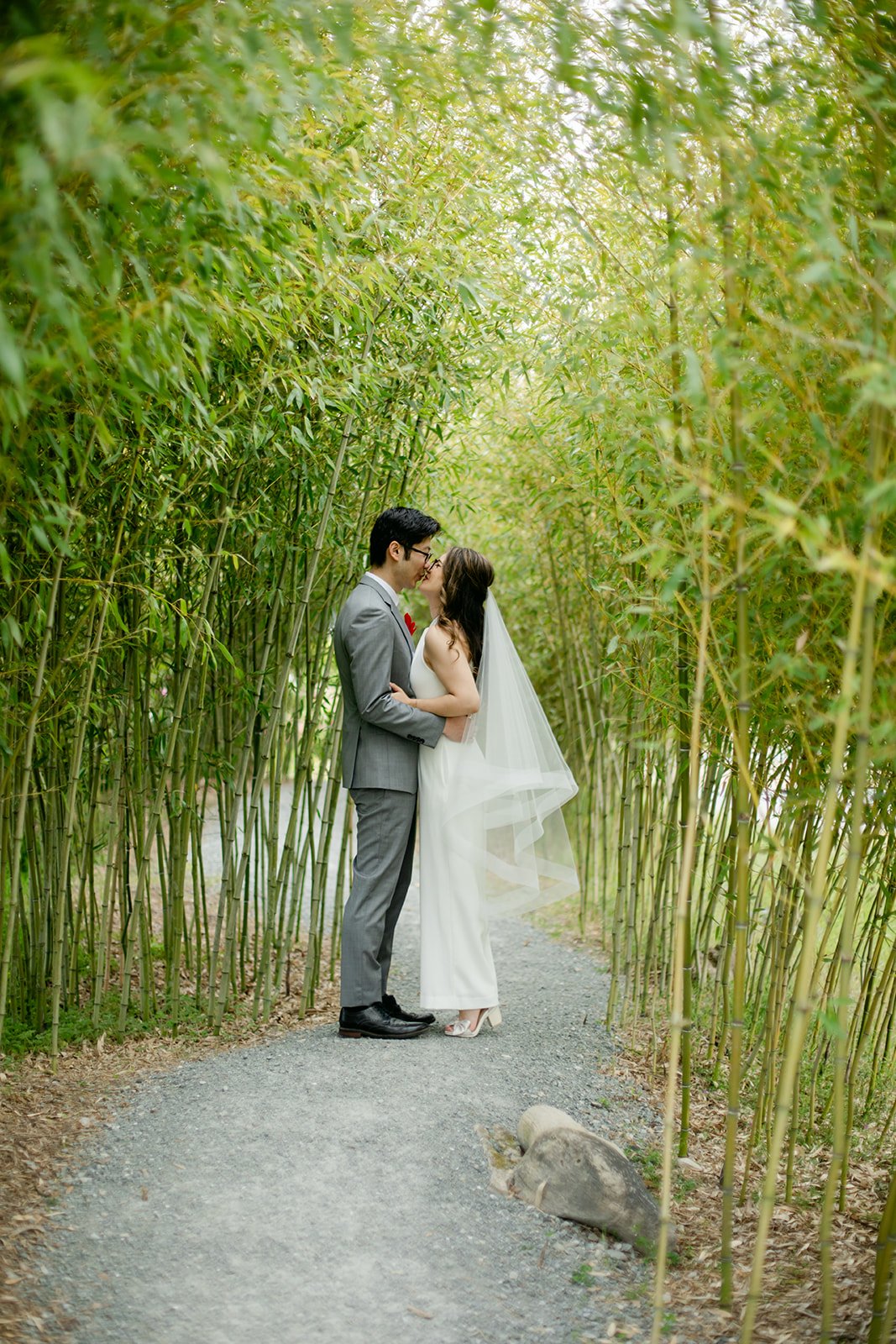 After the ceremony, we wandered the garden for portraits. The bamboo grove in particular was extraordinary — tall stalks rising on either side, creating a natural canopy that felt made for exactly this. The whole garden gave us frame after frame without even trying.