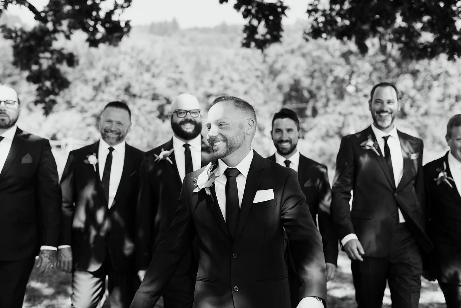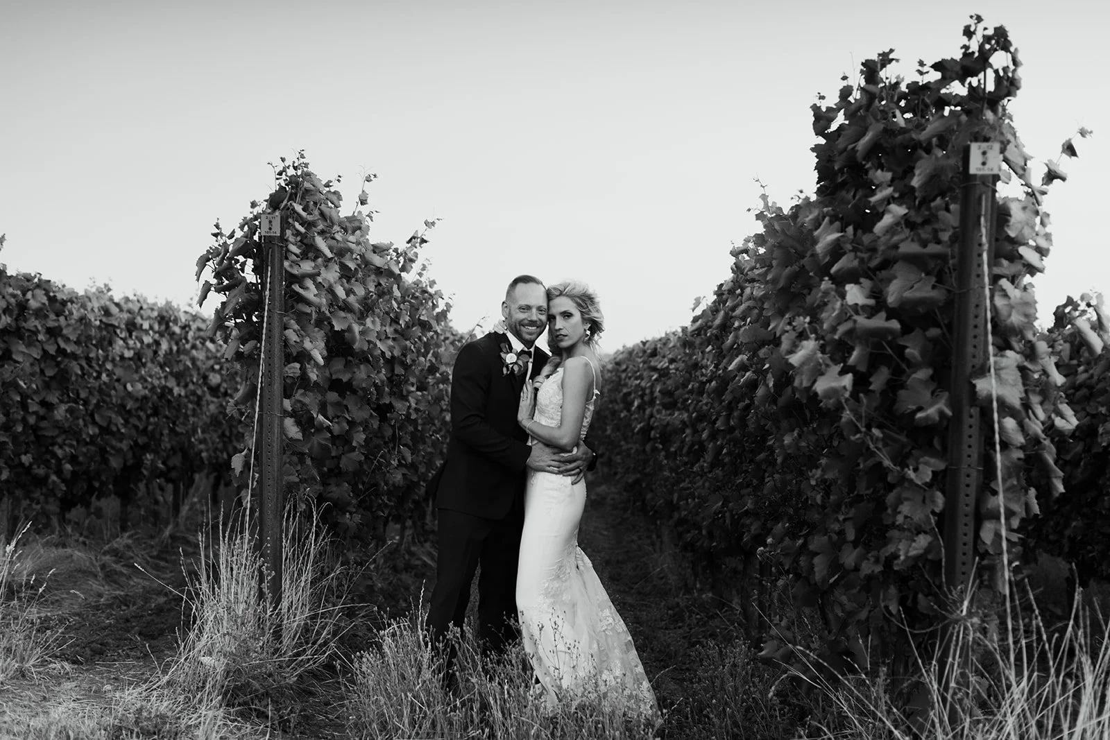 I first met Tyson at a wedding I photographed at Flâneur's Carlton Grain Elevator — a 125-year-old restored landmark in downtown Carlton that is exactly as cool as it sounds. So when he and Heather chose La Belle Promenade, Flâneur's estate vineyard tucked into the Chehalem Mountains, for their own wedding day, it felt like a full-circle kind of thing. Good people find good places.